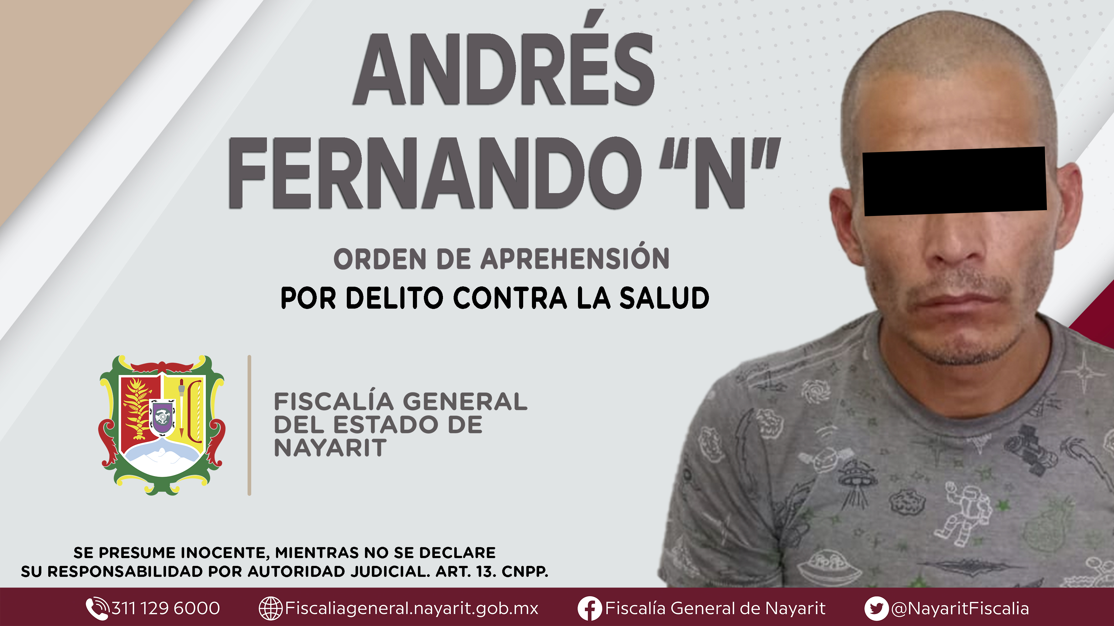 La Fiscalía General de Nayarit a través de la Agencia de Investigación Criminal ejecutó una orden de aprehensión en la ciudad de Tepic contra Andrés Fernando “N”, originario y vecino de la capital nayarita, por su presunta participación en hec...