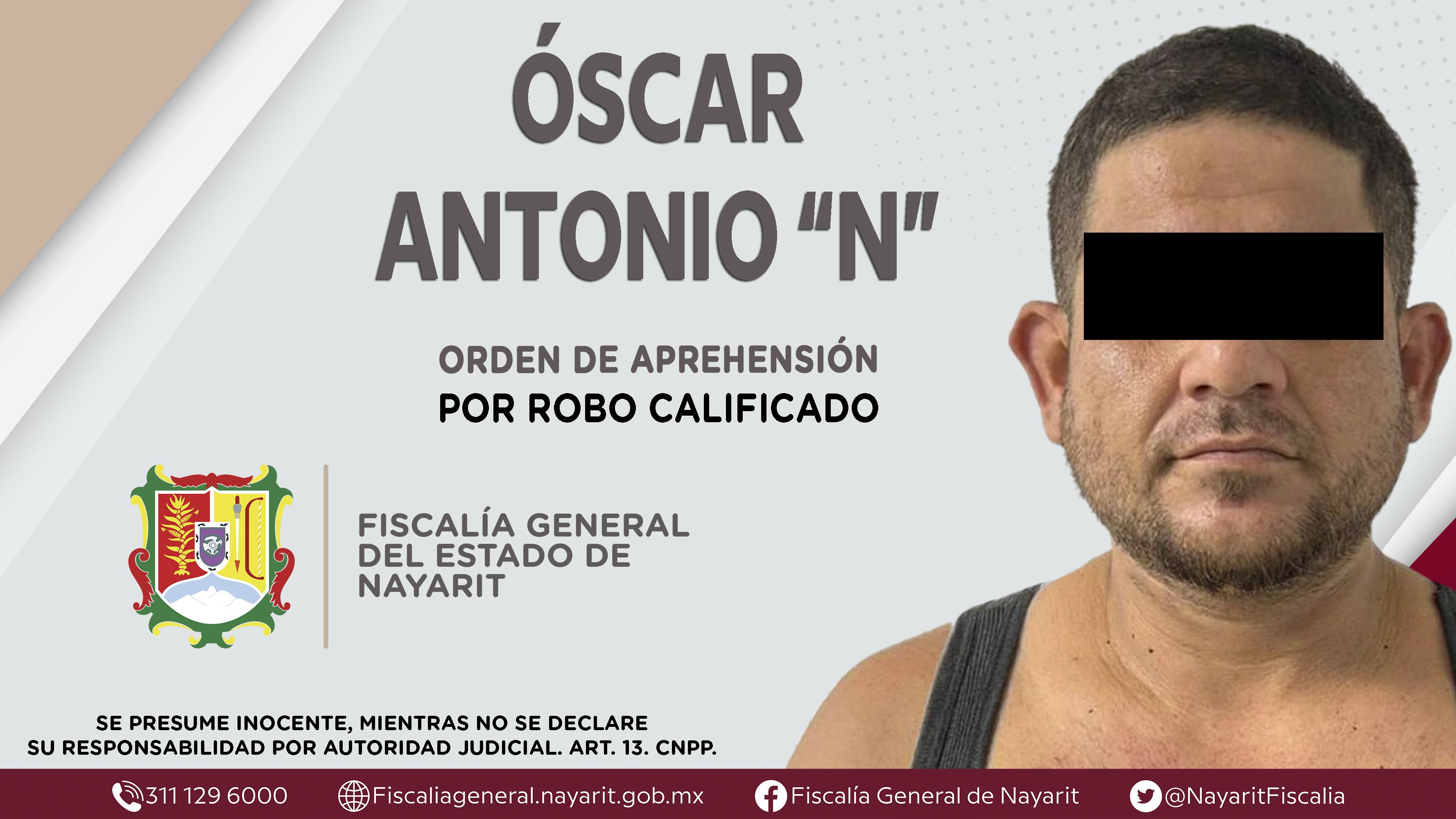 La Fiscalía General del Estado a través de la Agencia de Investigación Criminal dio cumplimiento a una orden de aprehensión en la ciudad de Tepic contra Óscar Antonio “N”, por su presunta participación en hechos que según apreciación de la le...