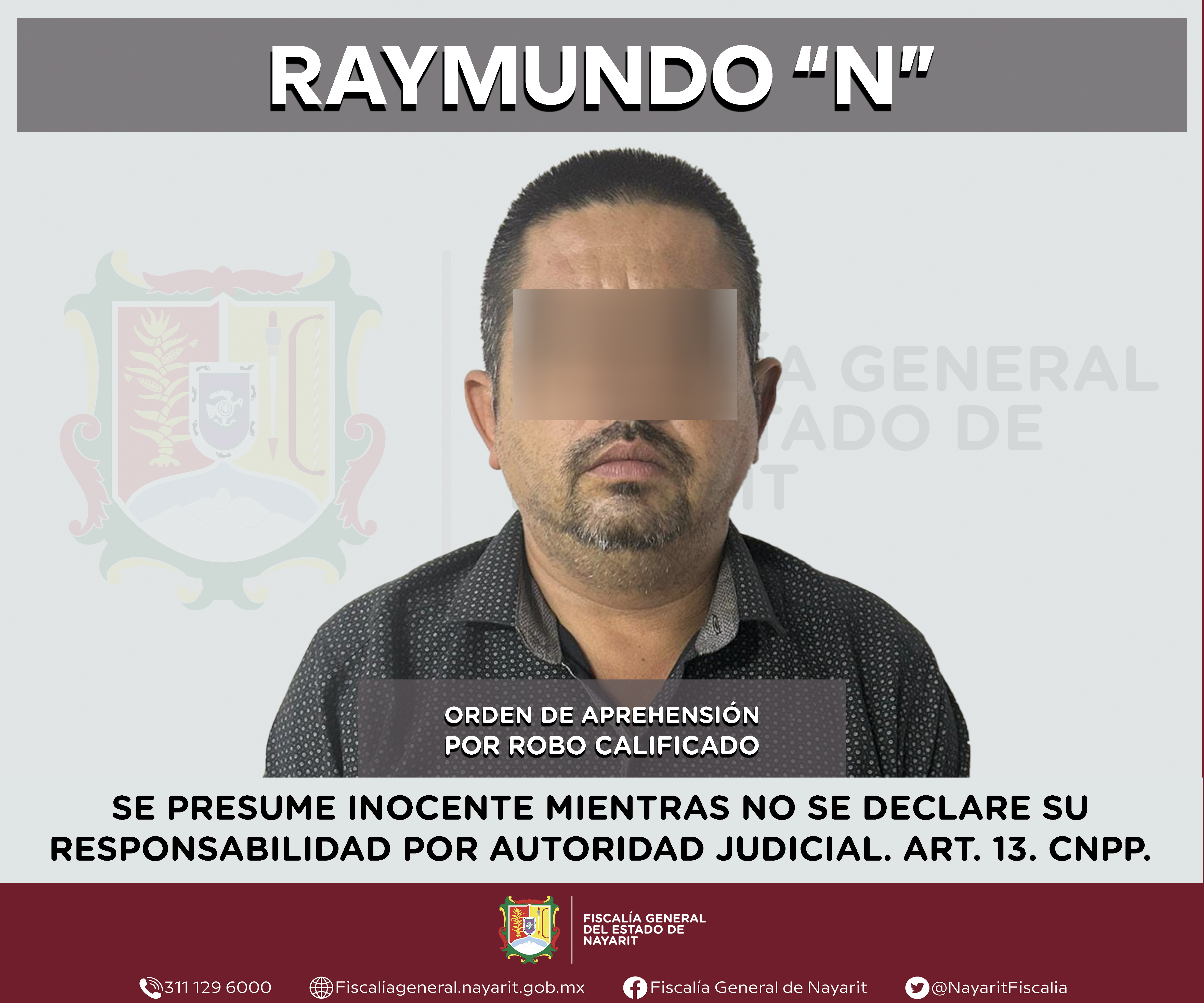 La Fiscalía General del estado de Nayarit a través de la Agencia de Investigación Criminal ejecutó una orden de aprehensión en la ciudad de Tepic contra Raymundo “N”, por su presunta participación en hechos que según valoración de la ley conf...
