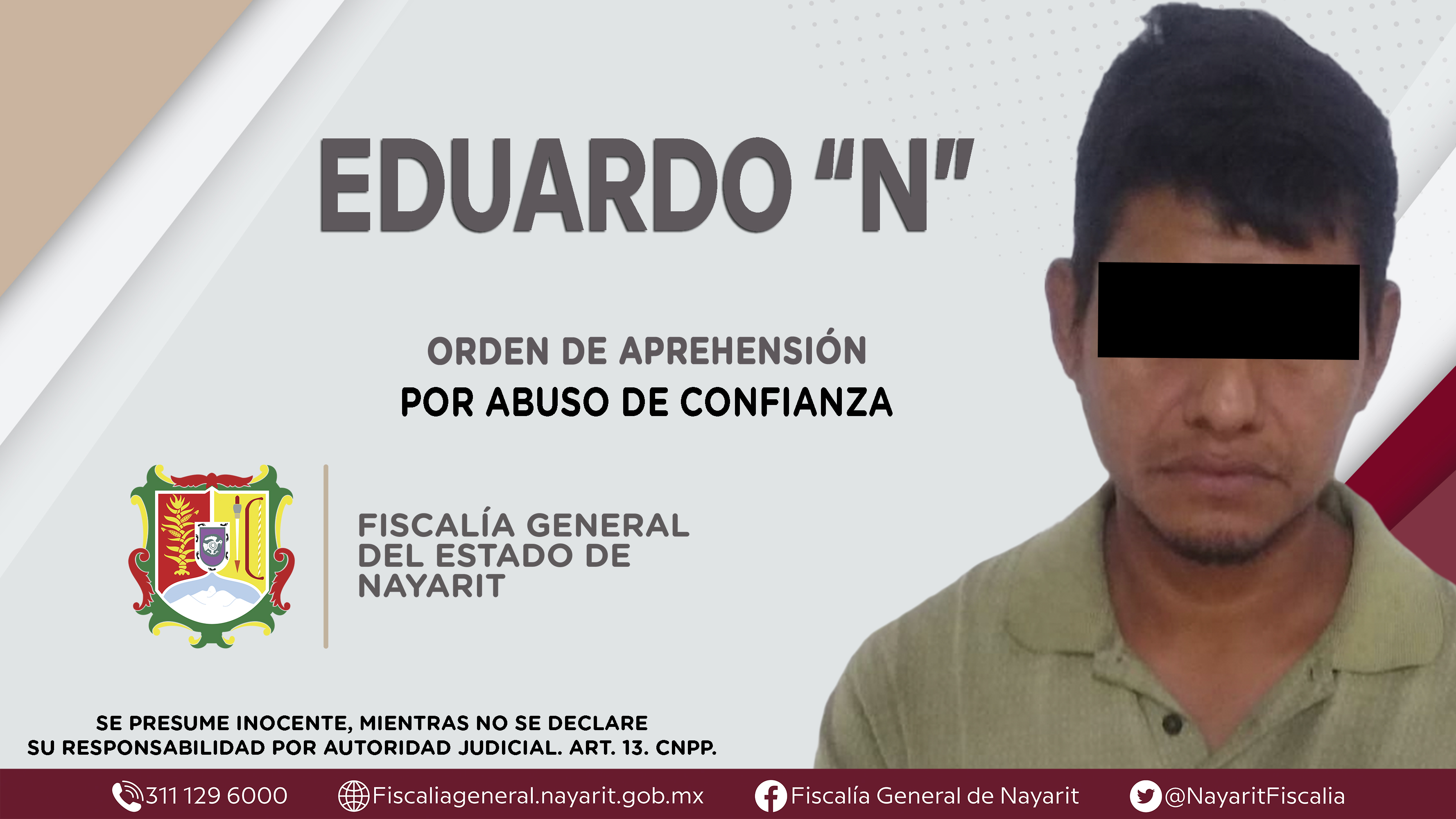 En la localidad El Limón, municipio de Santiago Ixcuintla, la Fiscalía General de Nayarit a través de la Agencia de Investigación Criminal ejecutó una orden de aprehensión contra Eduardo “N”, por su presunta participación en hechos que según ...