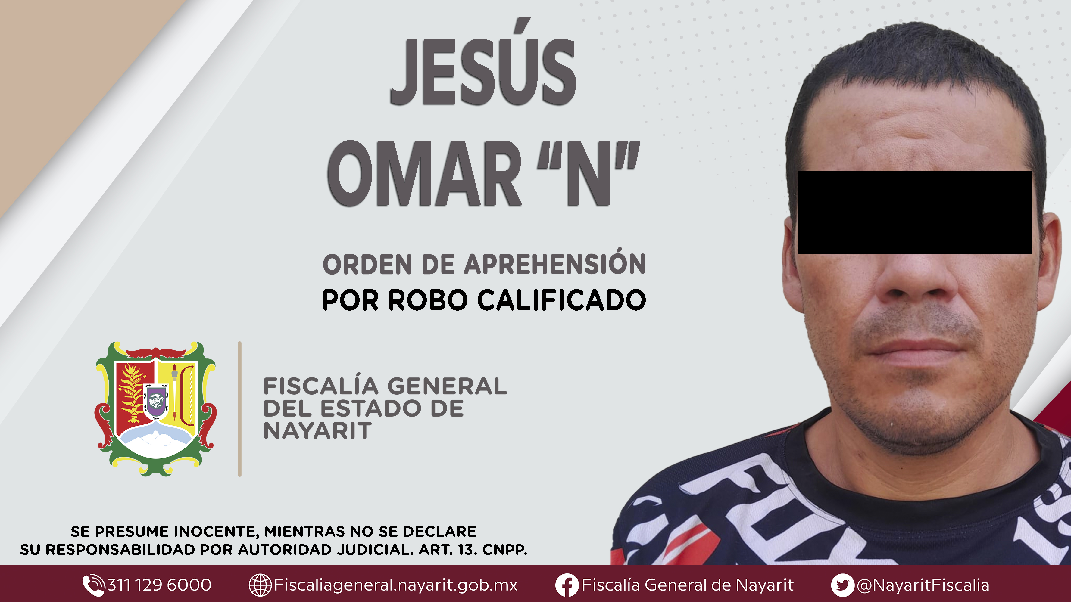 La Fiscalía General del Estado a través de la Agencia de Investigación Criminal dio cumplimiento a una orden de aprehensión en la ciudad de Tepic contra Jesús Omar “N”, por su presunta participación en hechos que según apreciación de la ley e...
