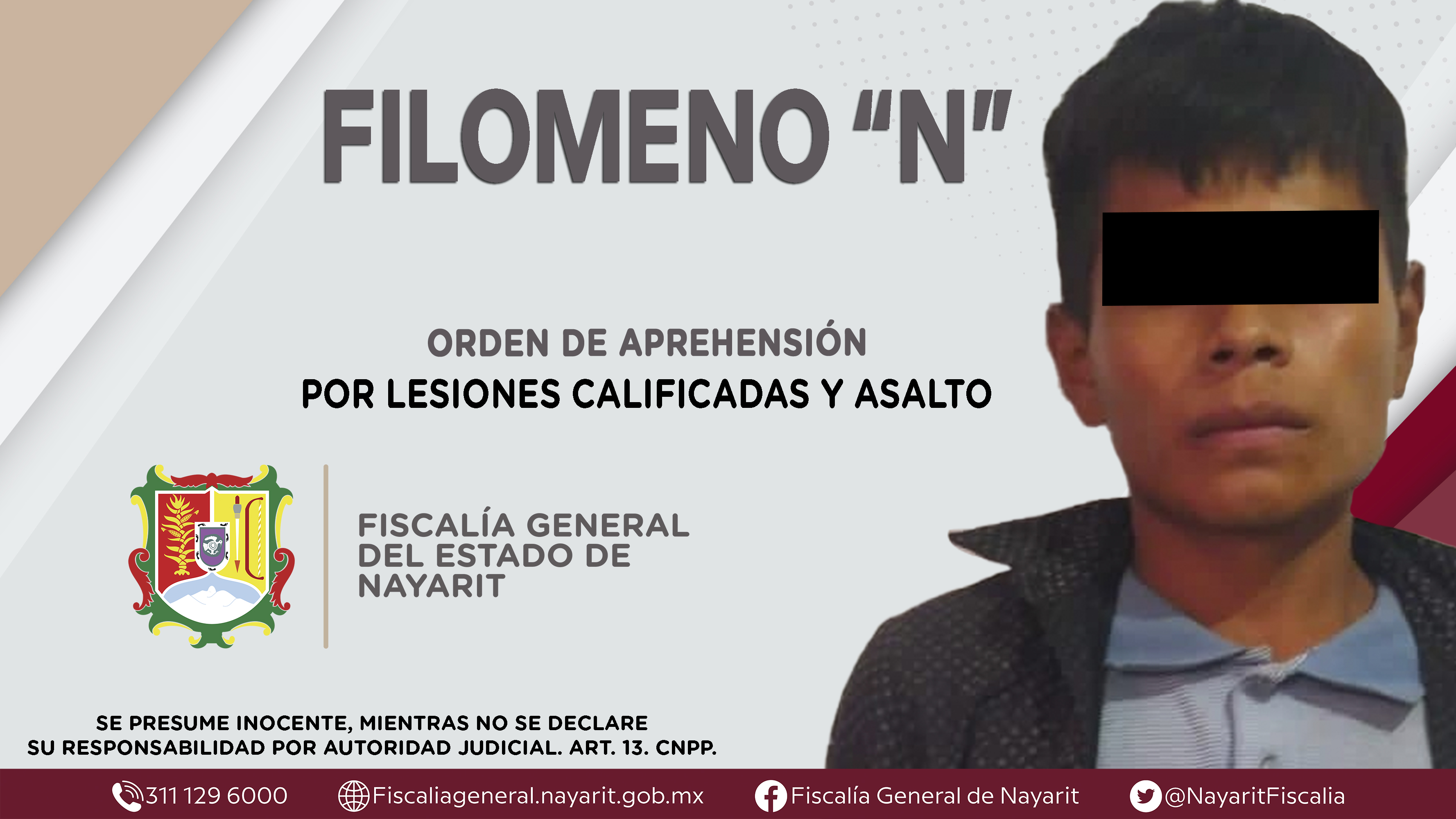 La Fiscalía General del Estado a través de la Agencia de Investigación Criminal dio cumplimiento a una orden de aprehensión en la localidad Jesús María, municipio Del Nayar contra Filomeno “N”, por su presunta participación en hechos que bajo ...
