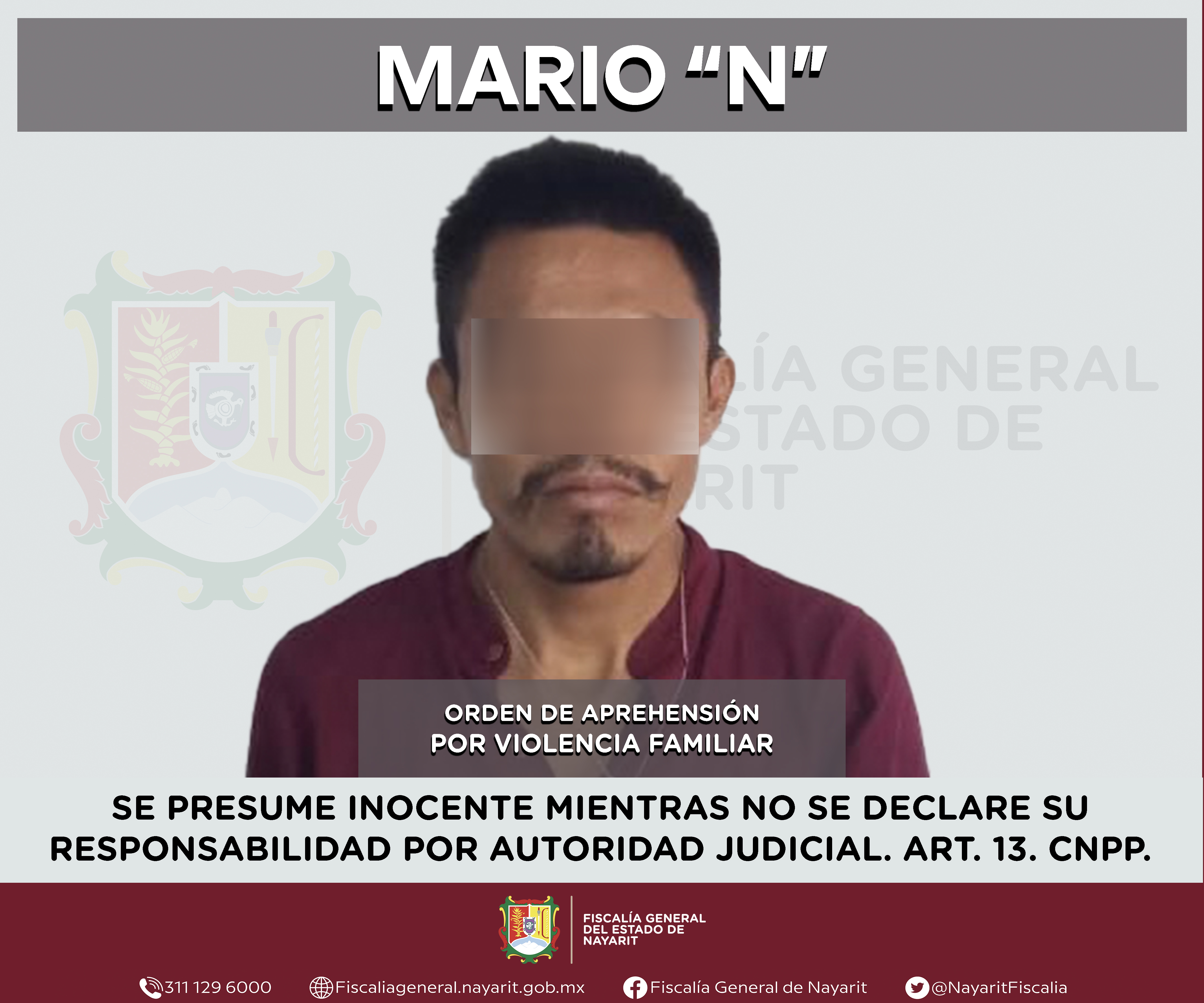 La Fiscalía General del estado de Nayarit a través de la Agencia de Investigación Criminal ejecutó una orden de aprehensión en la capital nayarita contra Mario “N”, por su presunta participación en hechos que según valoración de la ley config...