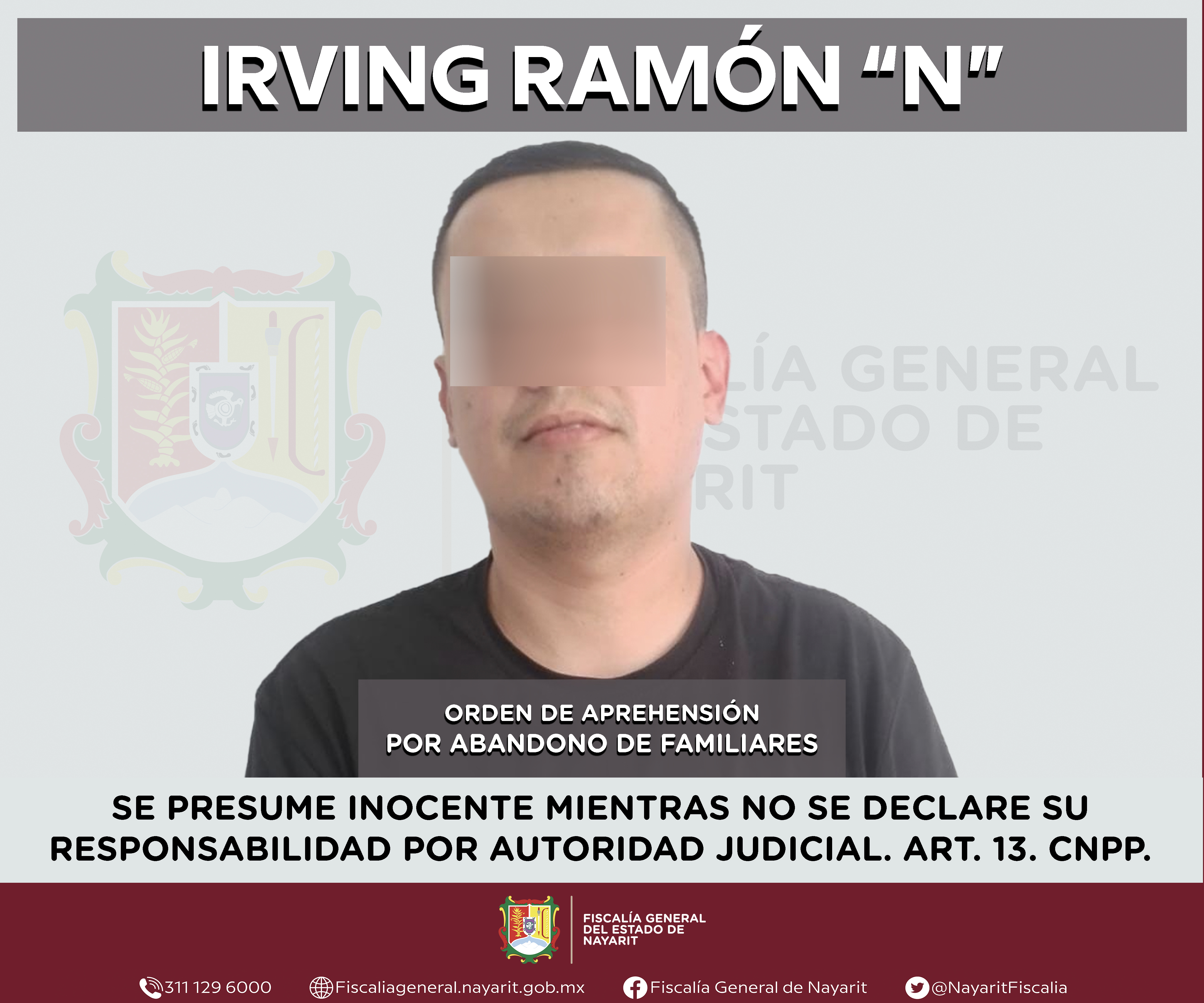 Elementos de la Agencia de Investigación Criminal de Nayarit ejecutaron una orden de aprehensión en la capital nayarita contra Irving Ramón “N”, por su presunta participación en hechos que según apreciación de la ley encuadran el delito de aban...