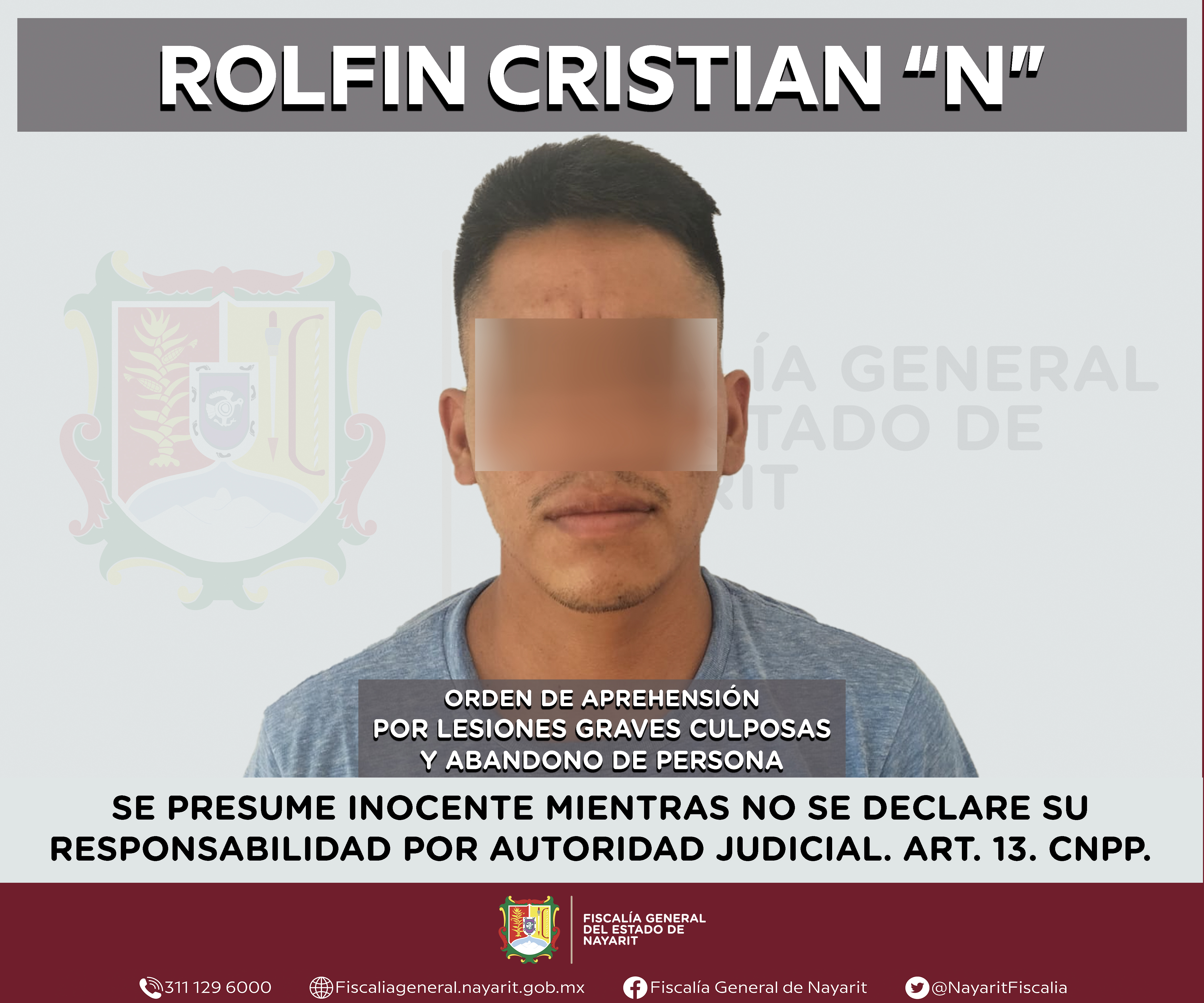 En el interior del Centro de Readaptación Social Regional de Bucerías, municipio de Bahía de Banderas, elementos de la Agencia de Investigación Criminal de Nayarit ejecutaron una orden de aprehensión contra Rolfin Cristian “N”, por su presunta p...