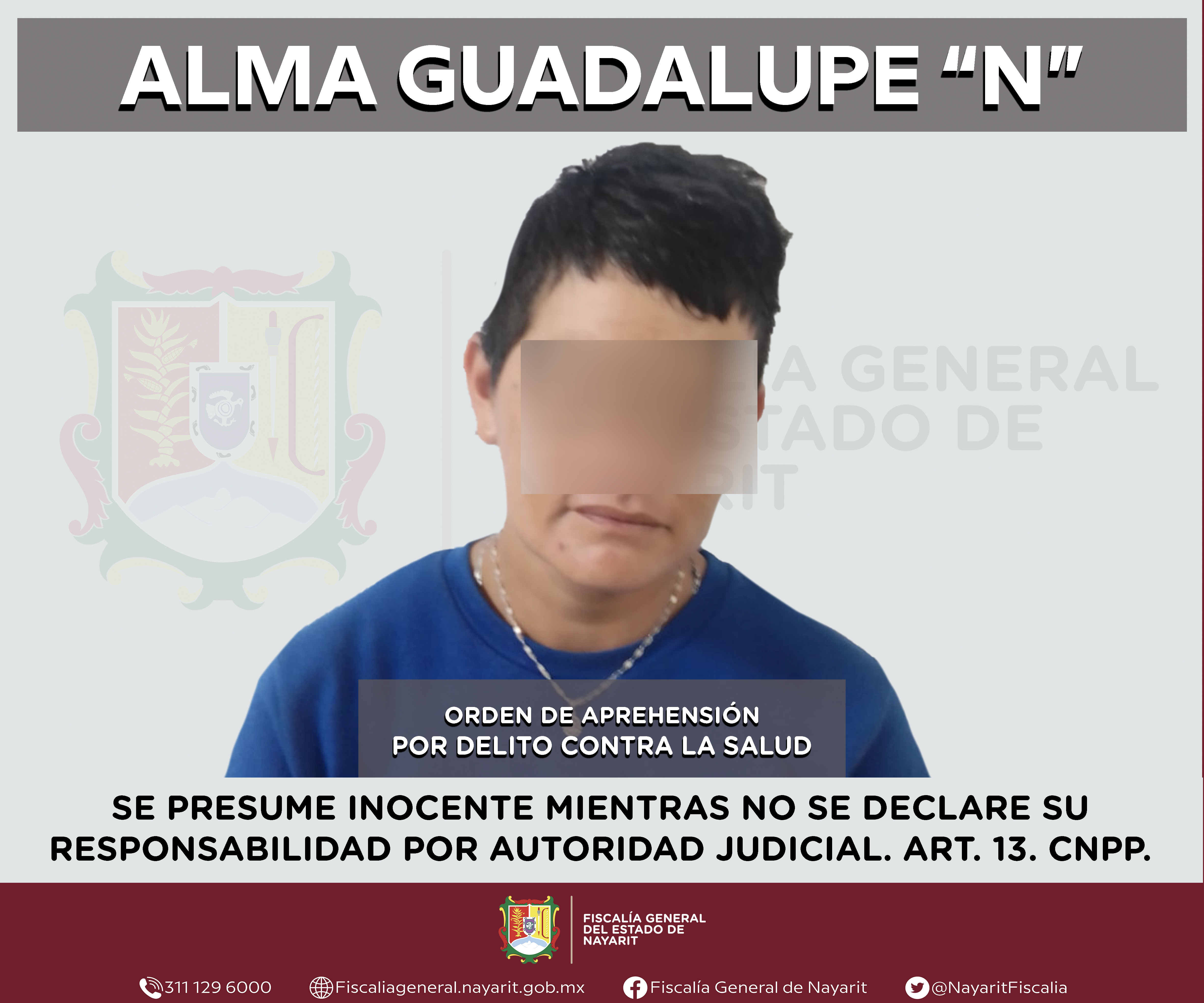 Elementos de la Agencia de Investigación Criminal de Nayarit ejecutaron una orden de aprehensión en la capital nayarita contra Alma Guadalupe “N”, por su presunta participación en hechos que según apreciación de la ley encuadran el delito contra...