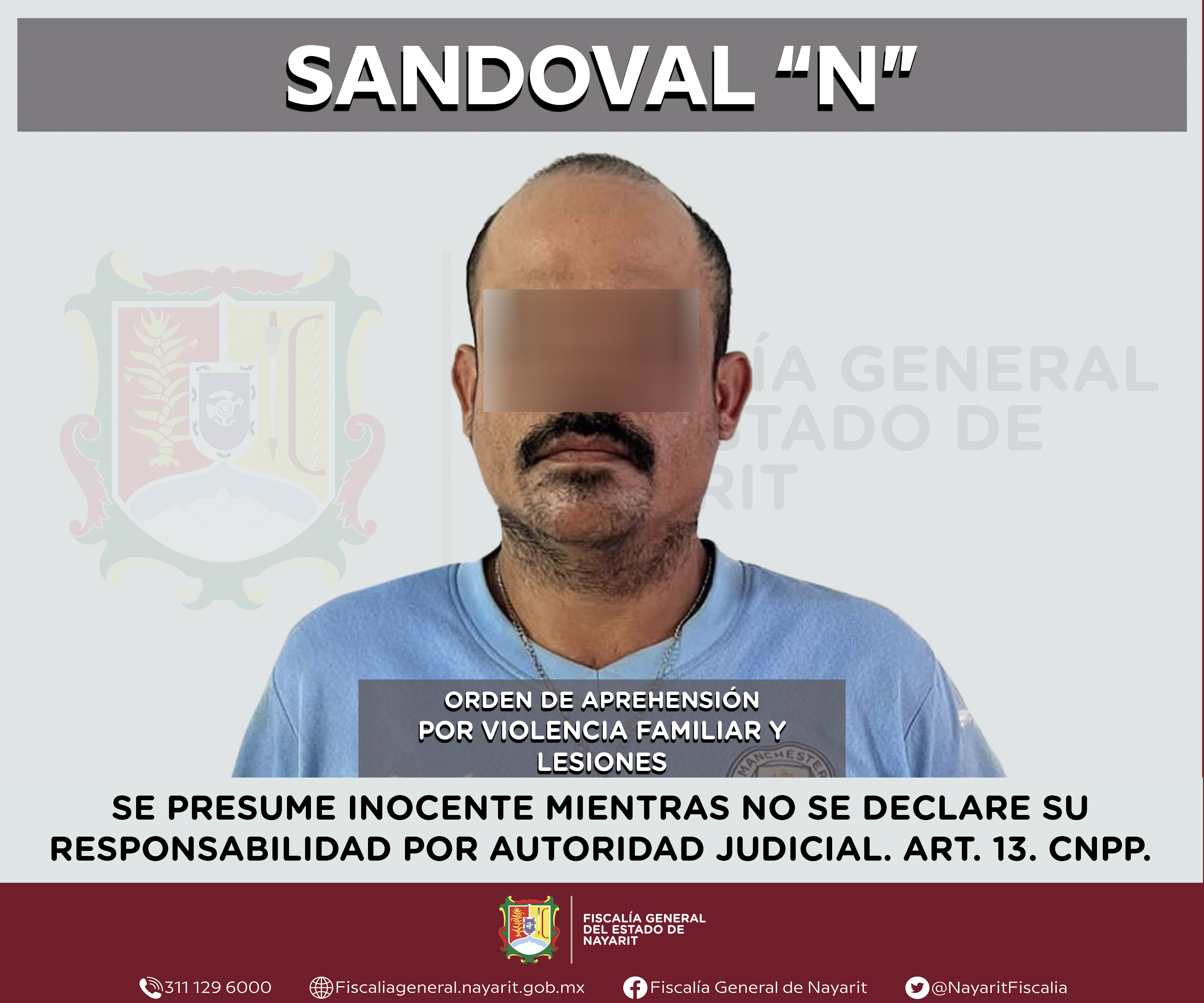 La Fiscalía General del estado de Nayarit a través de la Agencia de Investigación Criminal ejecutó una orden de aprehensión en la ciudad de Tepic contra Sandoval “N”, por su presunta participación en hechos que según valoración de la ley encu...