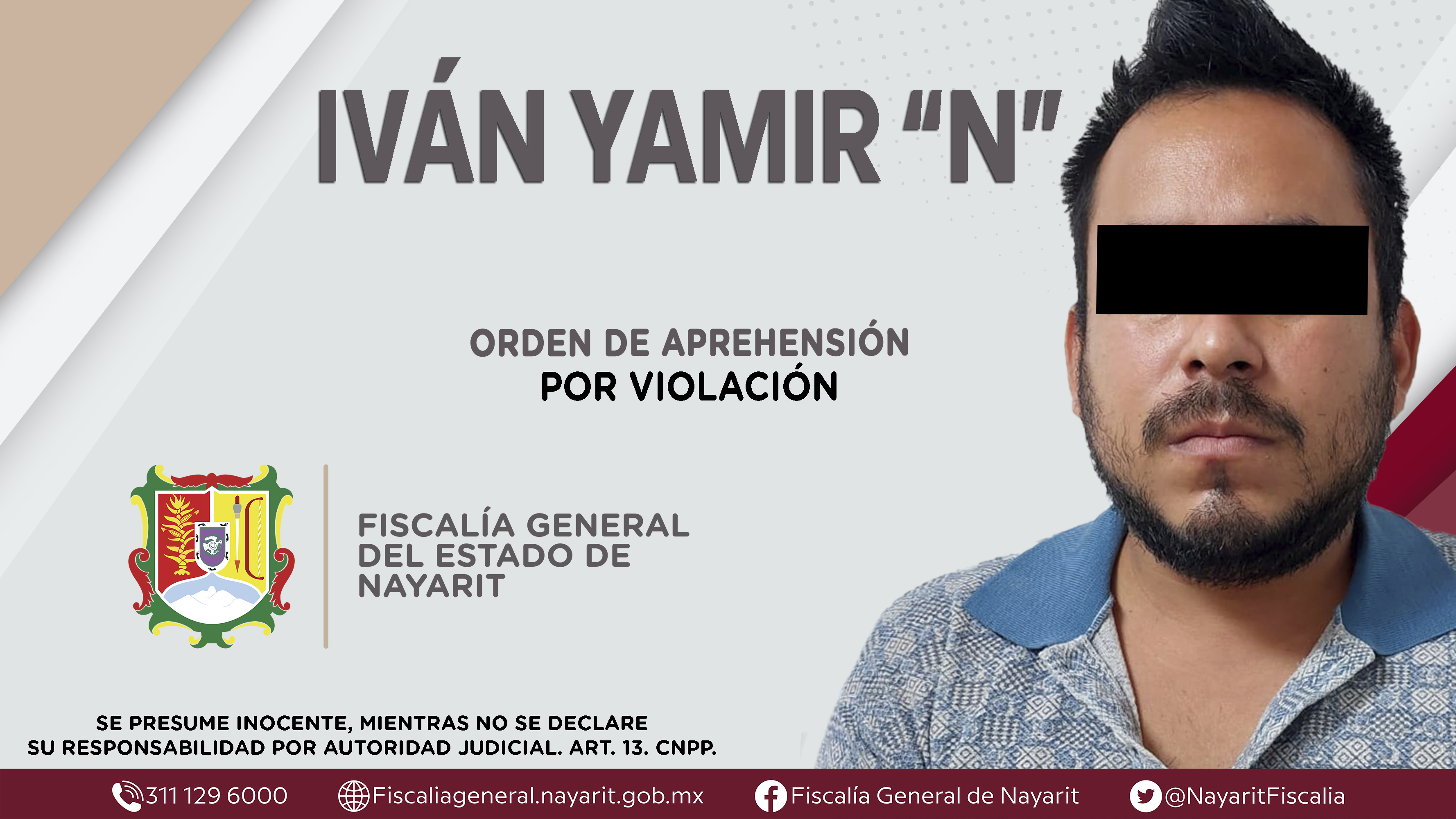 En la ciudad de Tepic, la Fiscalía General de Nayarit a través de la Agencia de Investigación Criminal ejecutó una orden de aprehensión contra Iván Yamir “N”, originario y vecino de la capital nayarita, por su presunta participación en hechos ...