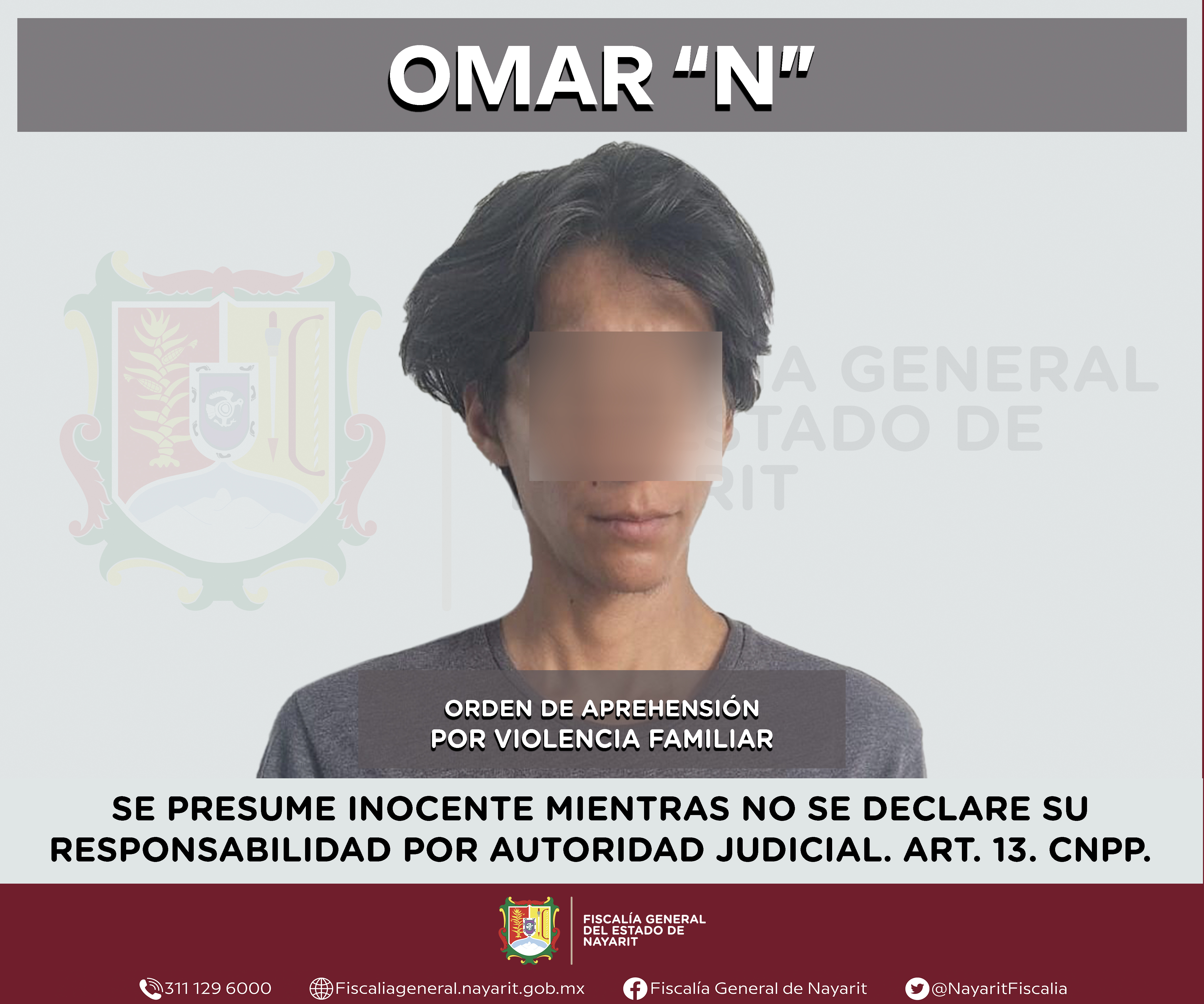 La Fiscalía General de Nayarit a través de la Agencia de Investigación Criminal ejecutó una orden de aprehensión en la ciudad de Tepic contra Omar “N”, por su probable participación en hechos que para la ley configuran el delito de violencia fa...