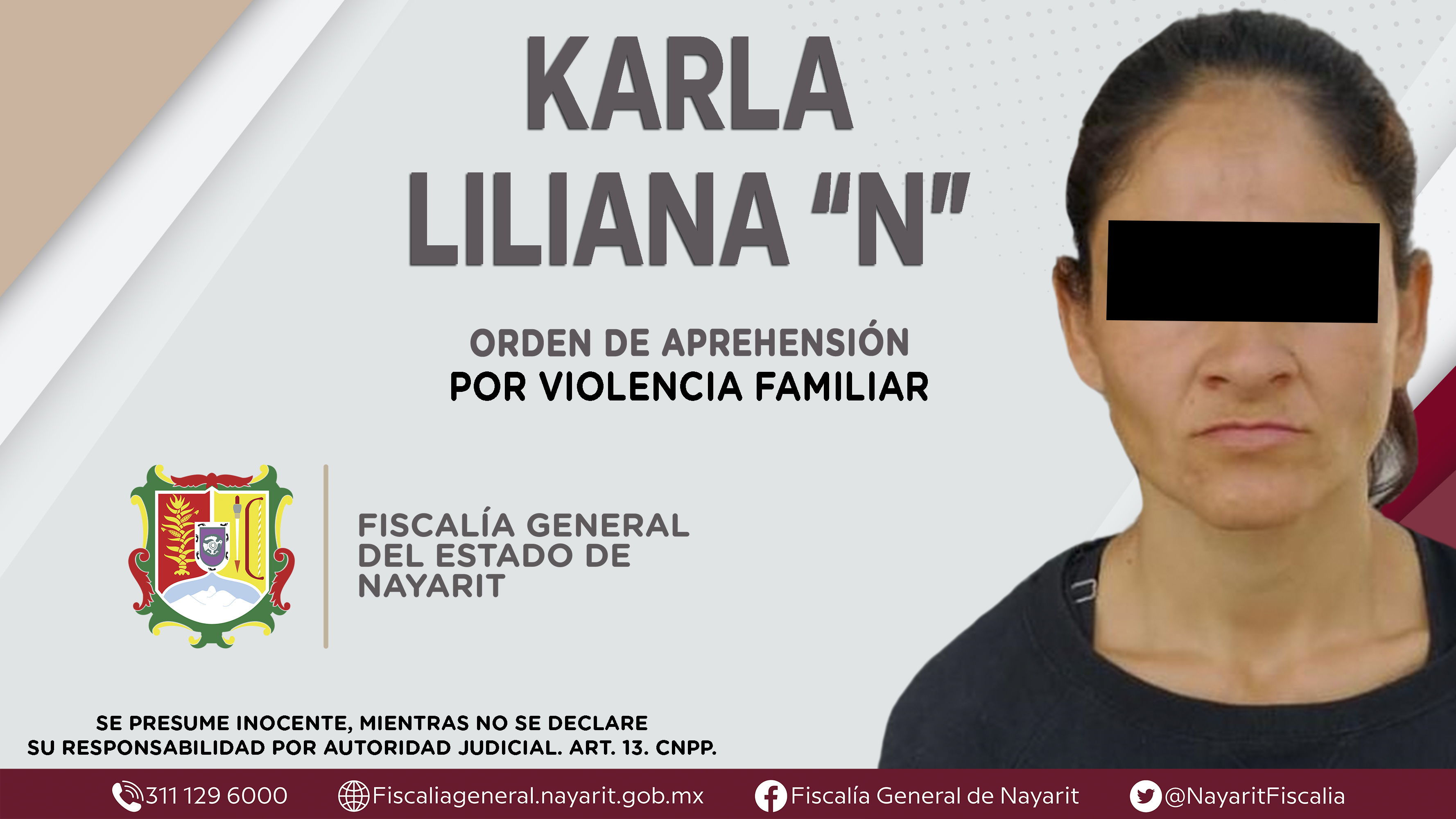 Elementos de la Agencia de Investigación Criminal de Nayarit ejecutaron una orden de aprehensión en la localidad Francisco I. Madero -Puga-, municipio de Tepic contra Karla Liliana “N”, originaria y vecina de la localidad donde fue aprehendida, por...