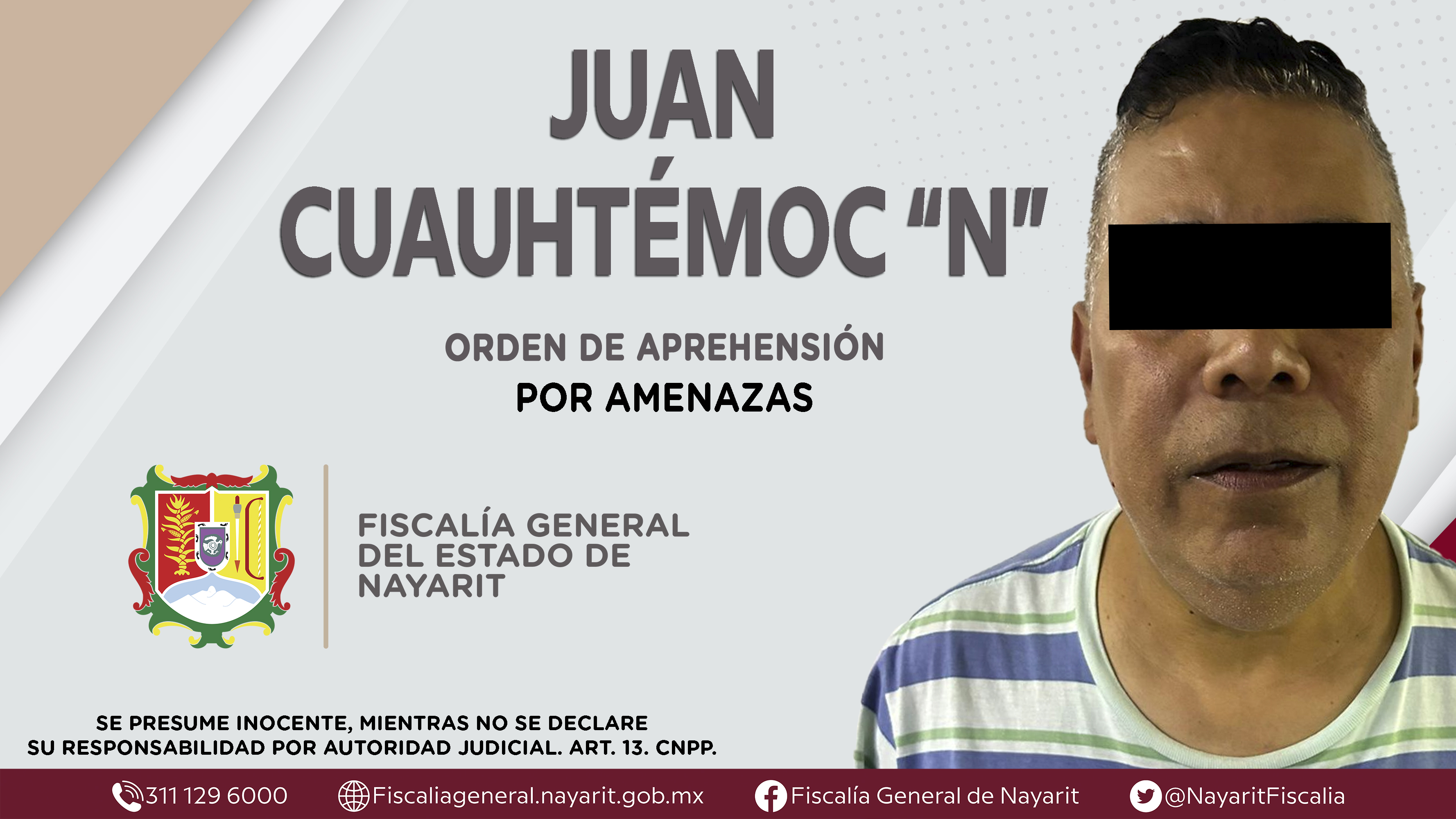 La Fiscalía General del Estado a través de la Agencia de Investigación Criminal dio cumplimiento a una orden de aprehensión en la ciudad de Tepic contra Juan Cuauhtémoc “N”, por su presunta participación en hechos que según apreciación de la ...
