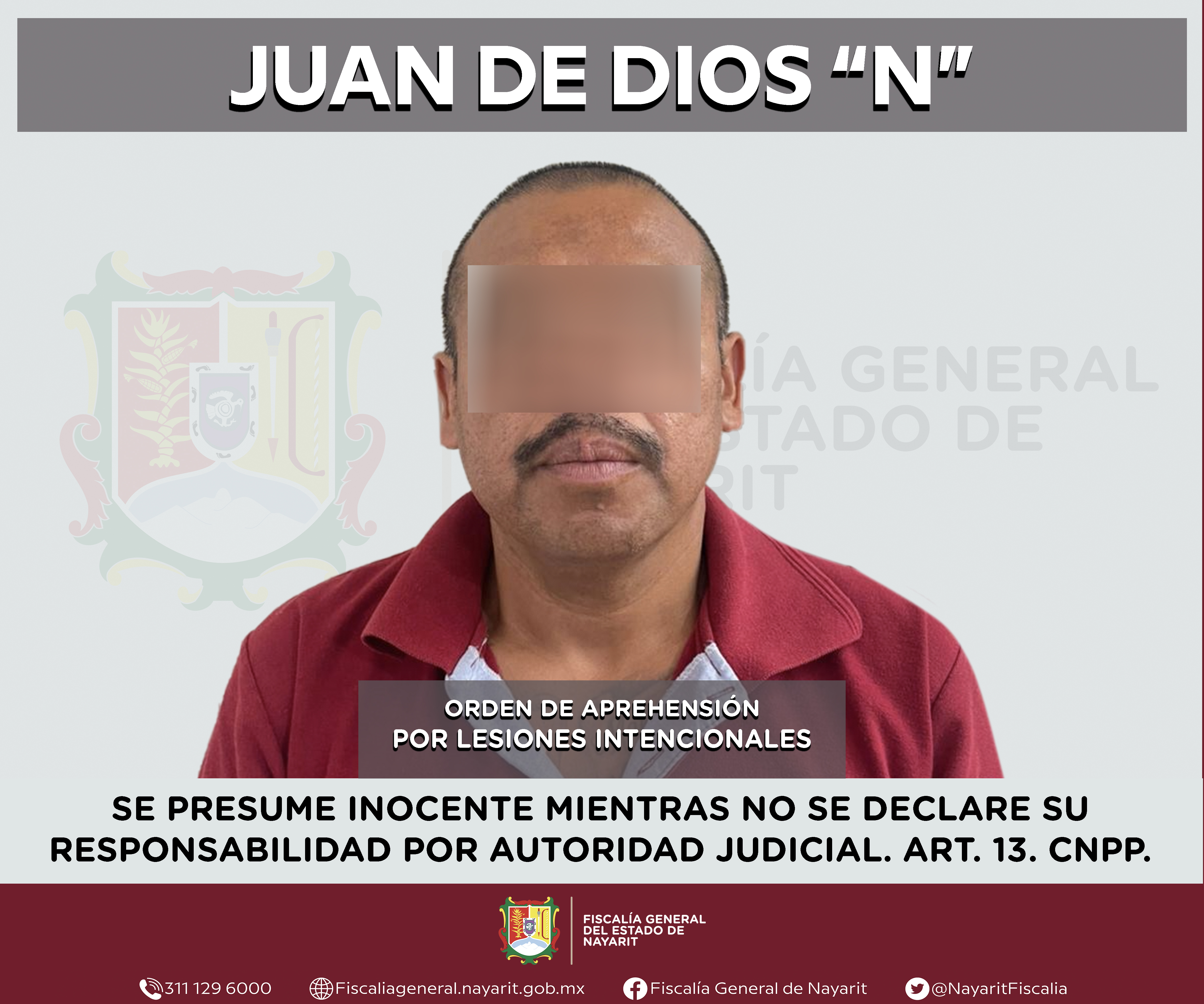 La Fiscalía General de Nayarit a través de la Agencia de Investigación Criminal ejecutó una orden de aprehensión en el municipio de Jala contra Juan de Dios “N”, por su probable participación en hechos que para la ley configuran el delito de le...