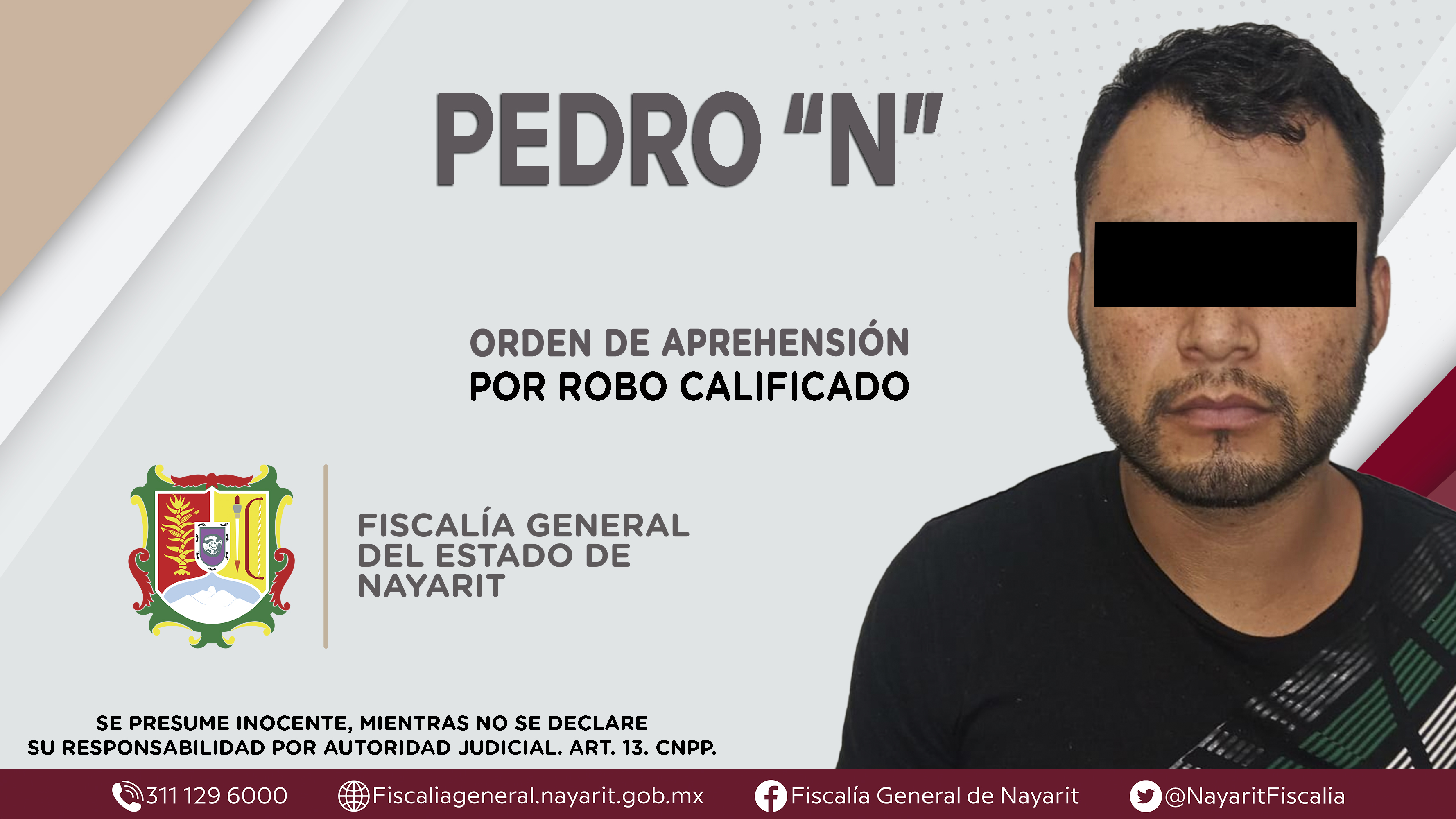 En la capital nayarita, la Fiscalía General de Nayarit a través de la Agencia de Investigación Criminal dio cumplimiento a una orden de aprehensión contra Pedro “N”, originario y vecino de la ciudad de Tepic, por su presunta participación en hec...