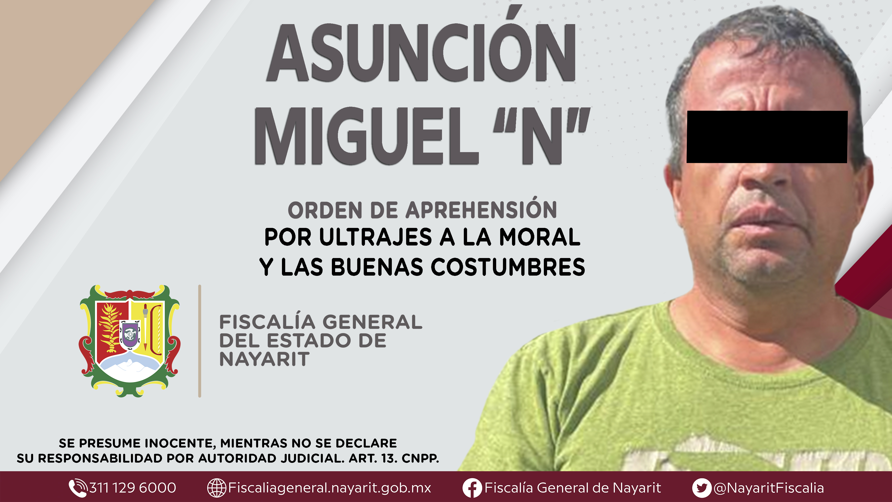 La Fiscalía General de Nayarit a través de la Agencia de Investigación Criminal ejecutó una orden de aprehensión en el municipio de Bahía de Banderas contra Asunción Miguel “N”, originario de Mexicali, Baja California y vecino de Jarretaderas,...