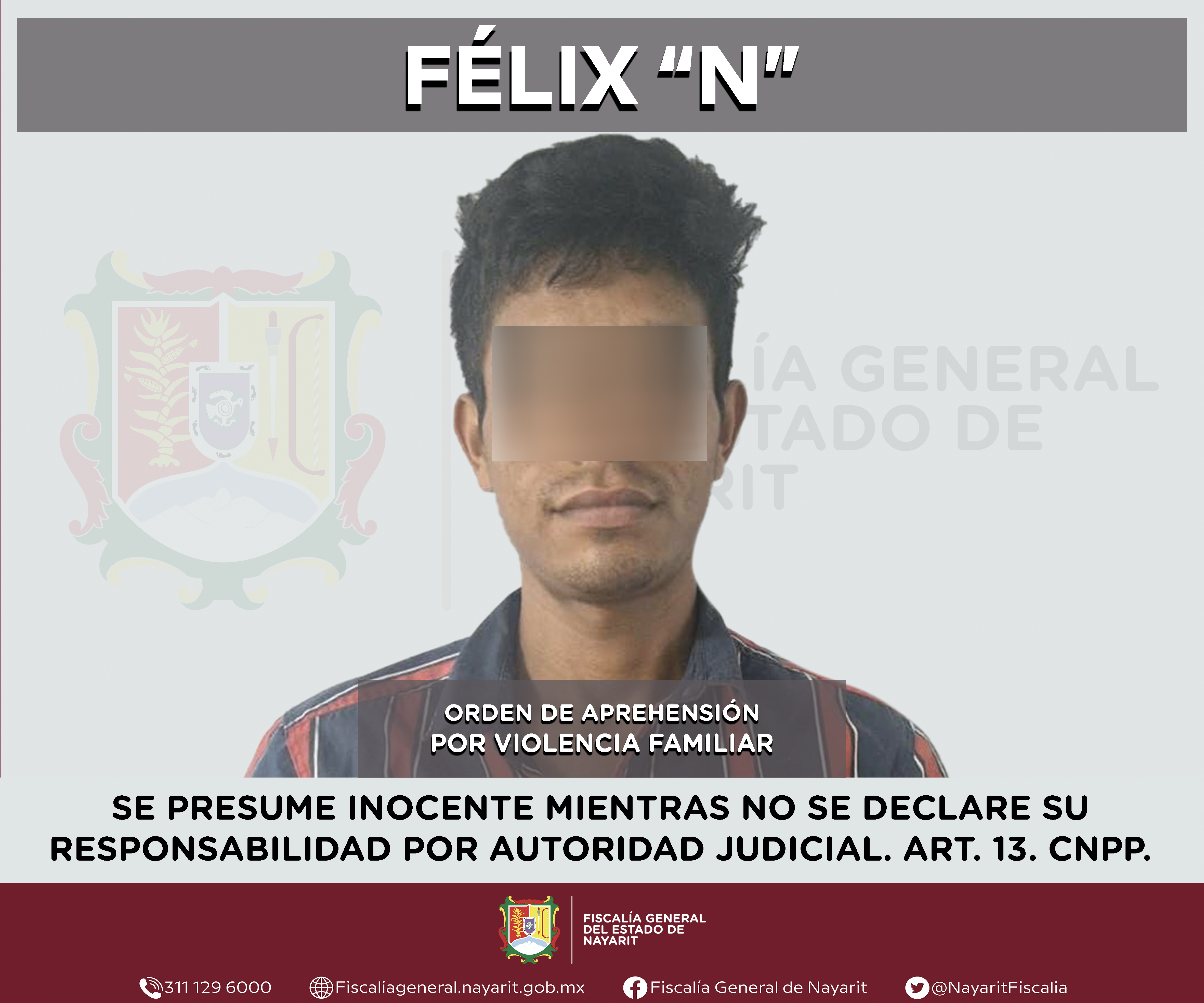 La Fiscalía General de Nayarit a través de la Agencia de Investigación Criminal ejecutó una orden de aprehensión en la ciudad de Tepic contra Félix “N”, por su probable participación en hechos que para la ley configuran el delito de violencia ...