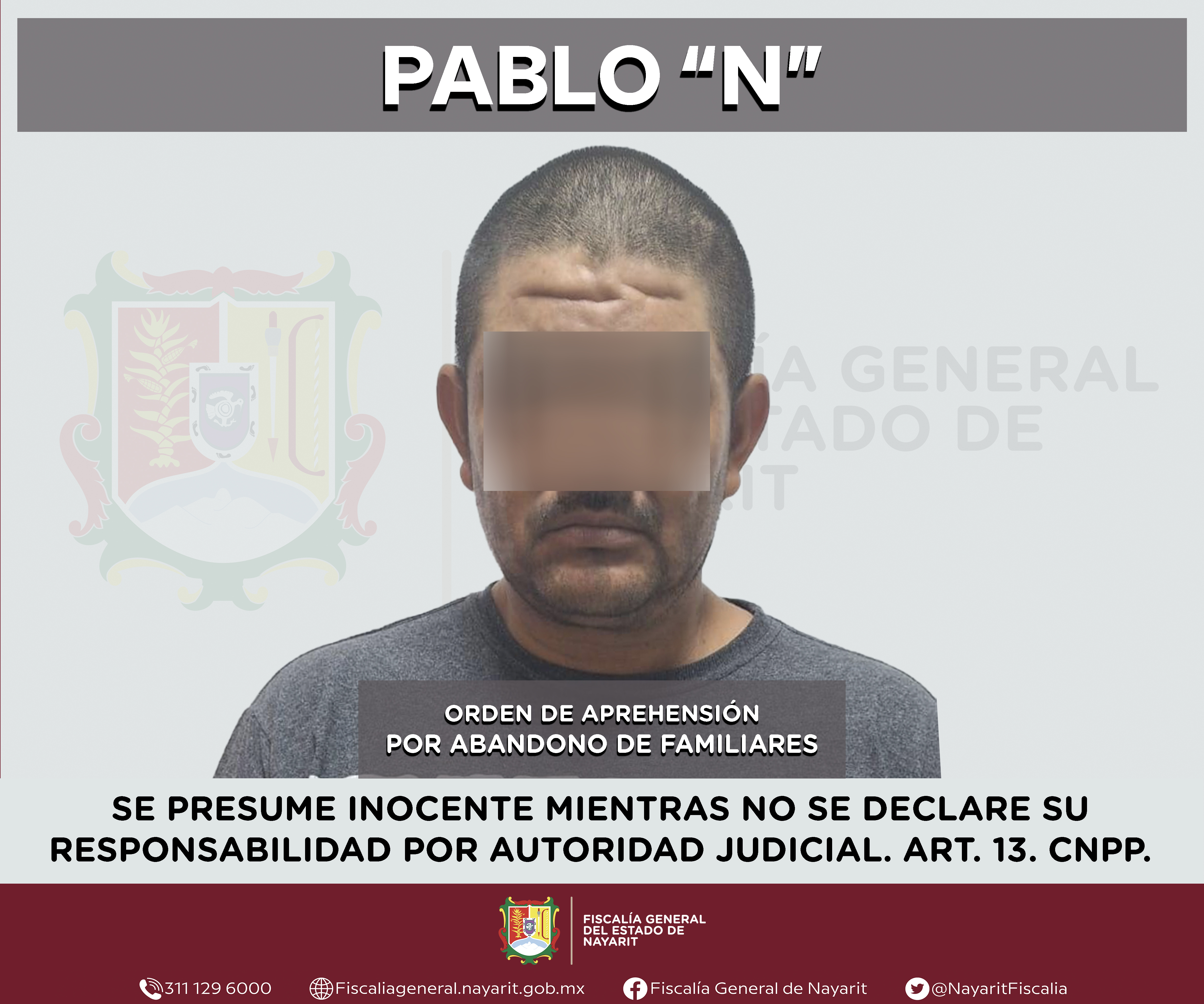 Elementos de la Agencia de Investigación Criminal de Nayarit ejecutaron una orden de aprehensión en la capital nayarita contra Pablo “N”, por su presunta participación en hechos que según apreciación de la ley encuadran el delito de abandono de ...