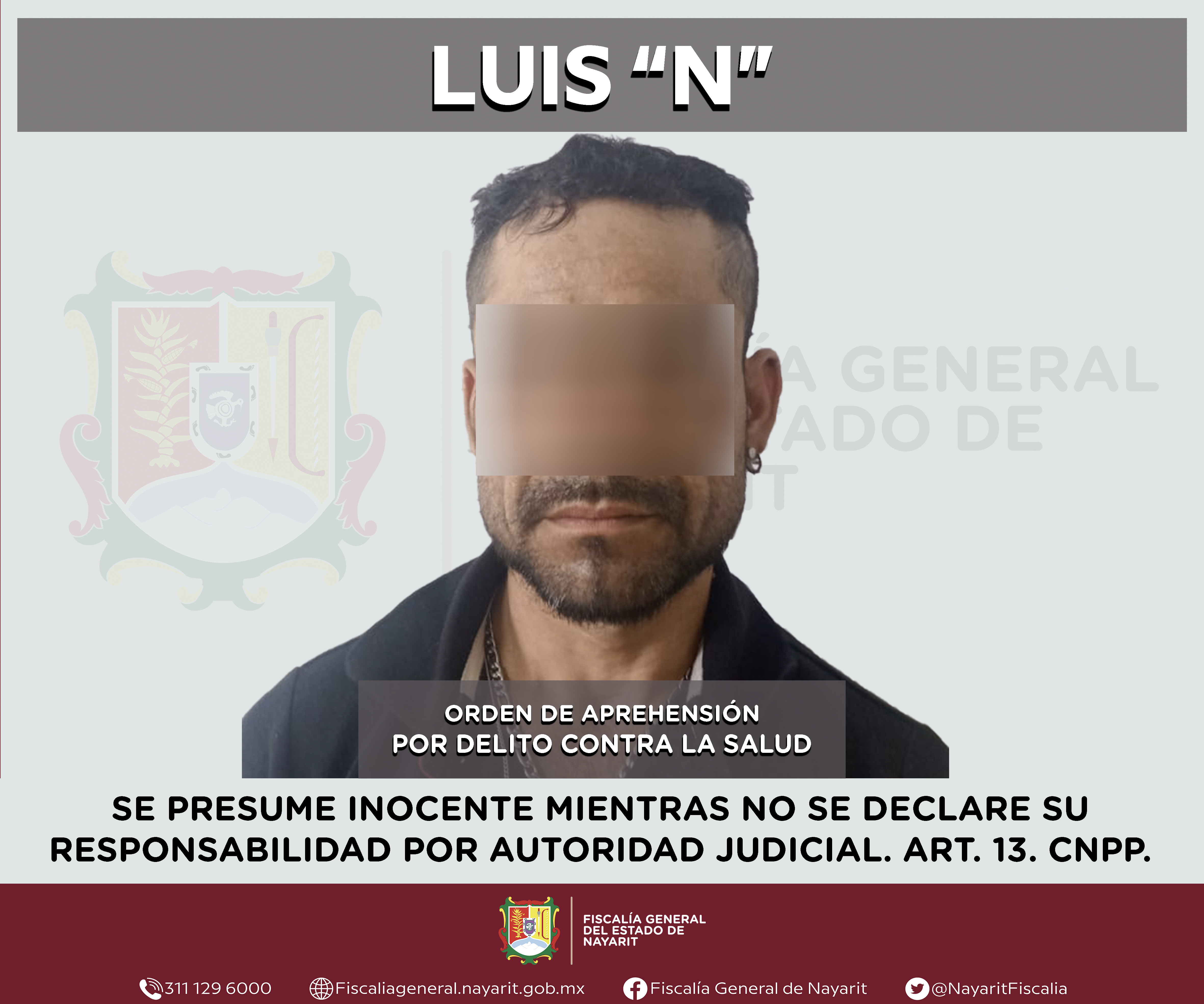 Elementos de la Agencia de Investigación Criminal de Nayarit ejecutaron una orden de aprehensión en la ciudad de Tepic contra Luis “N”, por su presunta participación en hechos que según apreciación de la ley encuadran el delito contra la salud e...