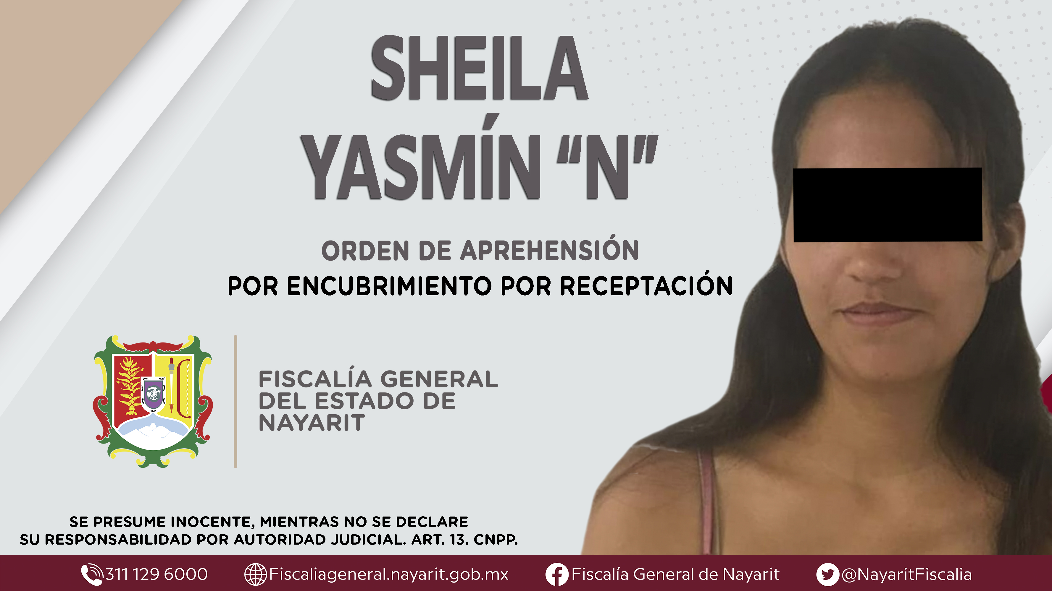 La Fiscalía General del Estado a través de la Agencia de Investigación Criminal dio cumplimiento a una orden de aprehensión en la capital nayarita contra Sheila Yasmín “N”, por su presunta participación en hechos que según apreciación de la l...