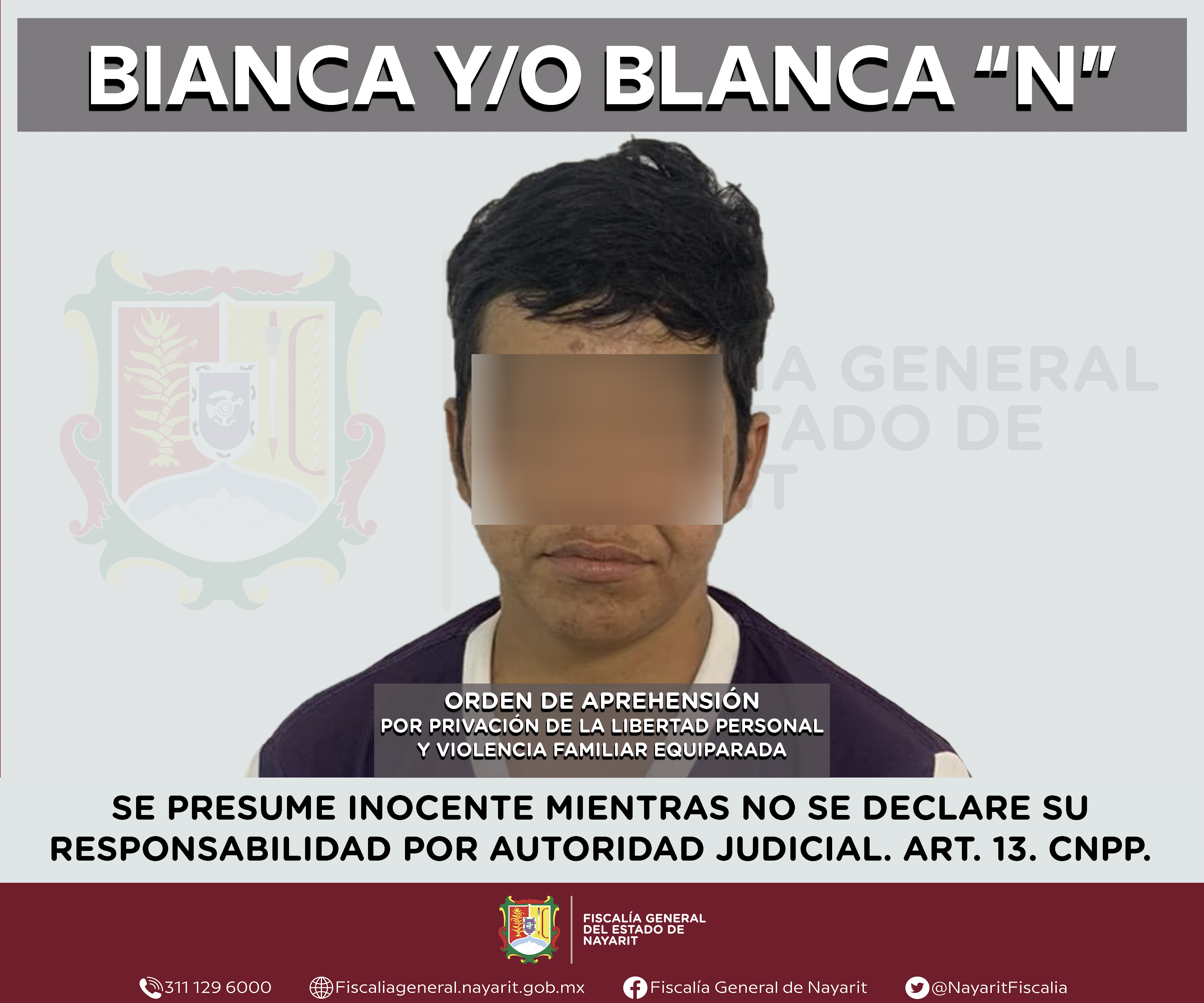 La Fiscalía General de Nayarit a través de la Agencia de Investigación Criminal ejecutó una orden de aprehensión en la localidad 6 de Enero, municipio de Tepic contra Bianca y/o Blanca “N”, por su probable participación en hechos que para la le...