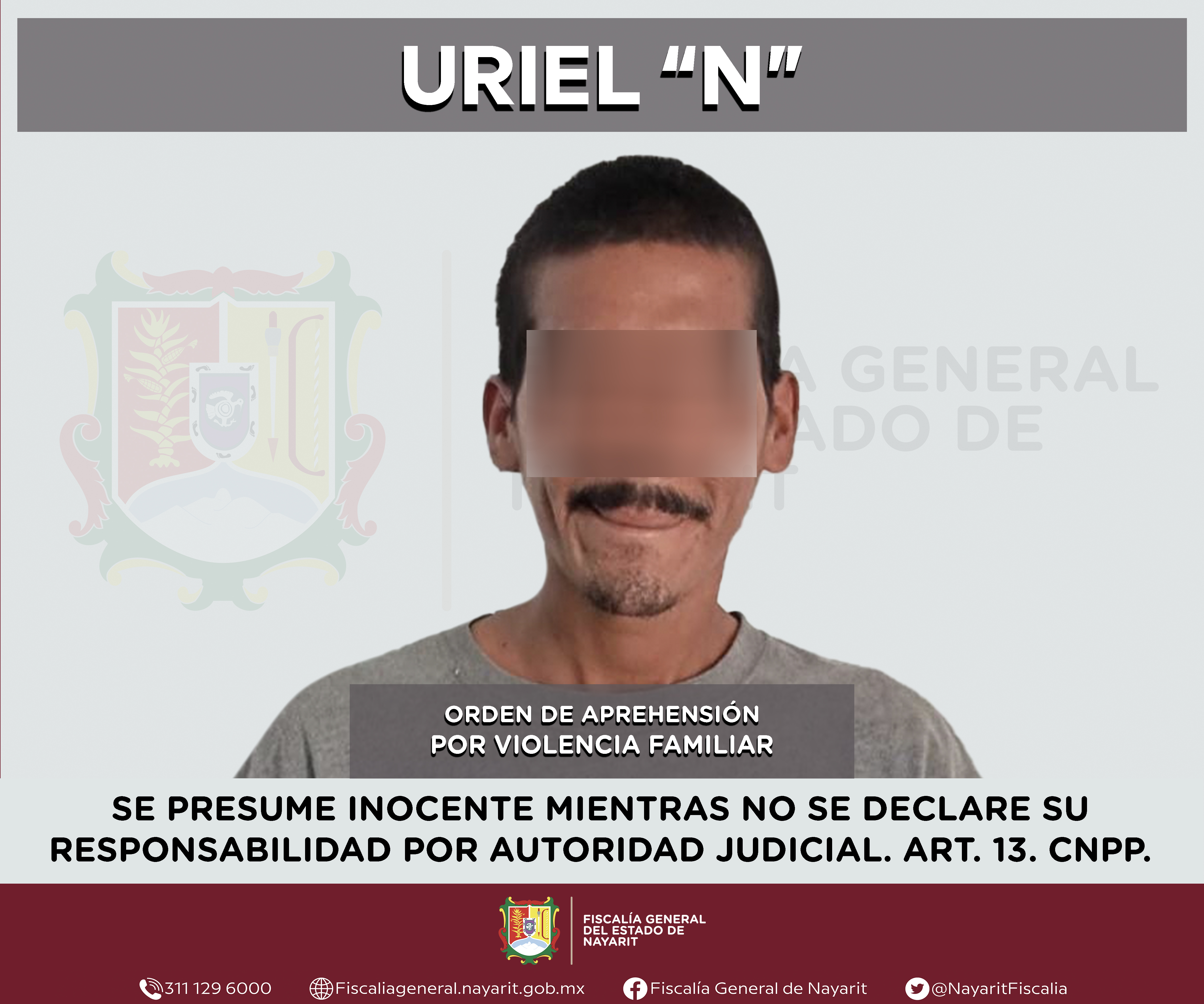 La Fiscalía General de Nayarit a través de la Agencia de Investigación Criminal ejecutó una orden de aprehensión en la ciudad de Tepic contra Uriel “N”, por su probable participación en hechos que para la ley configuran el delito de violencia f...