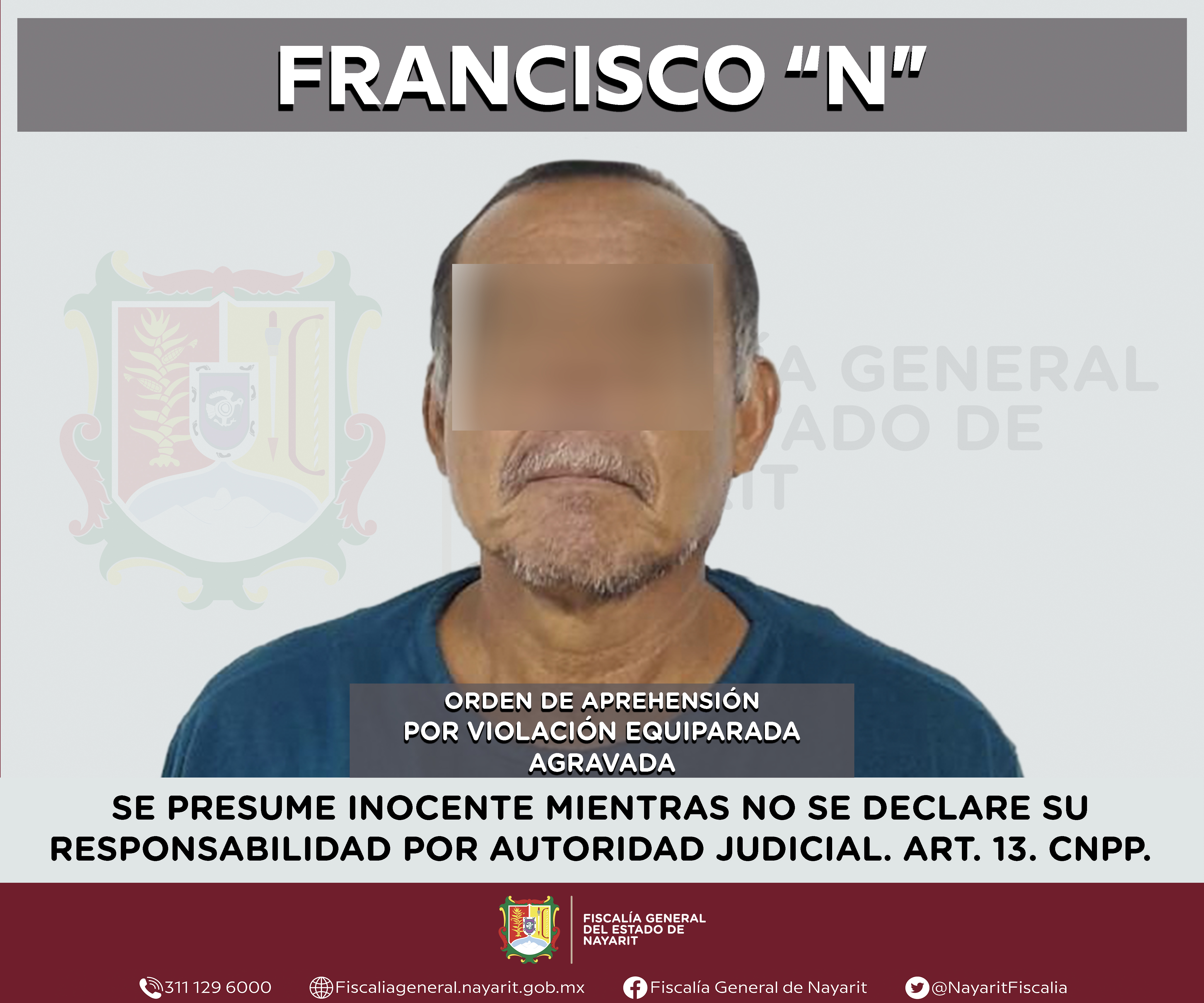Elementos de la Agencia de Investigación Criminal de Nayarit ejecutaron una orden de aprehensión en la capital nayarita contra Francisco “N”, por su presunta participación en hechos que según apreciación de la ley encuadran el delito de violaci...