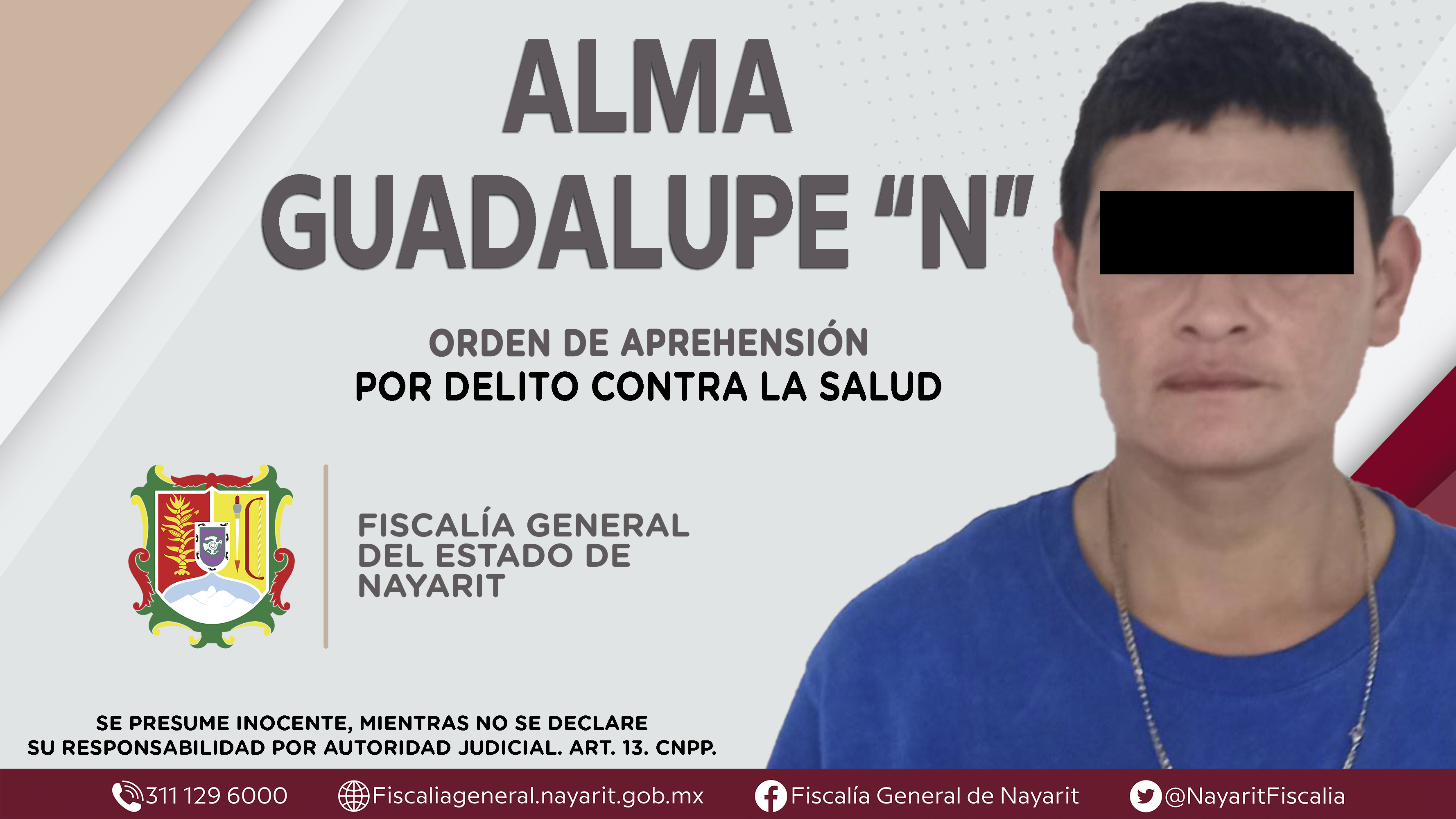 En la ciudad de Tepic, la Fiscalía General de Nayarit a través de la Agencia de Investigación Criminal ejecutó una orden de aprehensión contra Alma Guadalupe “N”, por su presunta participación en hechos que según apreciación de la ley encuadr...