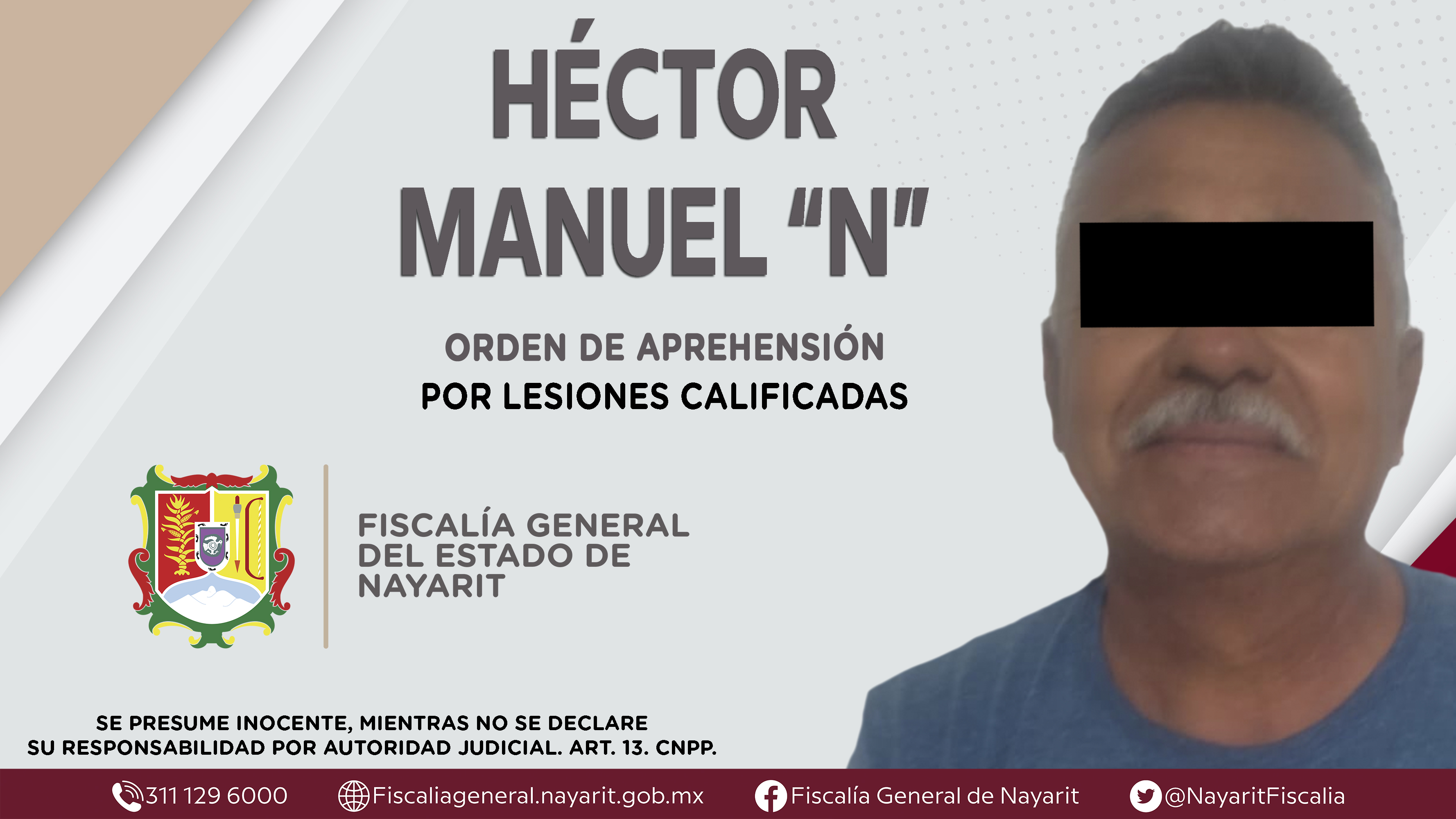 La Fiscalía General del Estado a través de la Agencia de Investigación Criminal dio cumplimiento a una orden de aprehensión en la localidad Amapa, municipio de Santiago Ixcuintla contra Héctor Manuel “N”, por su presunta participación en hechos...