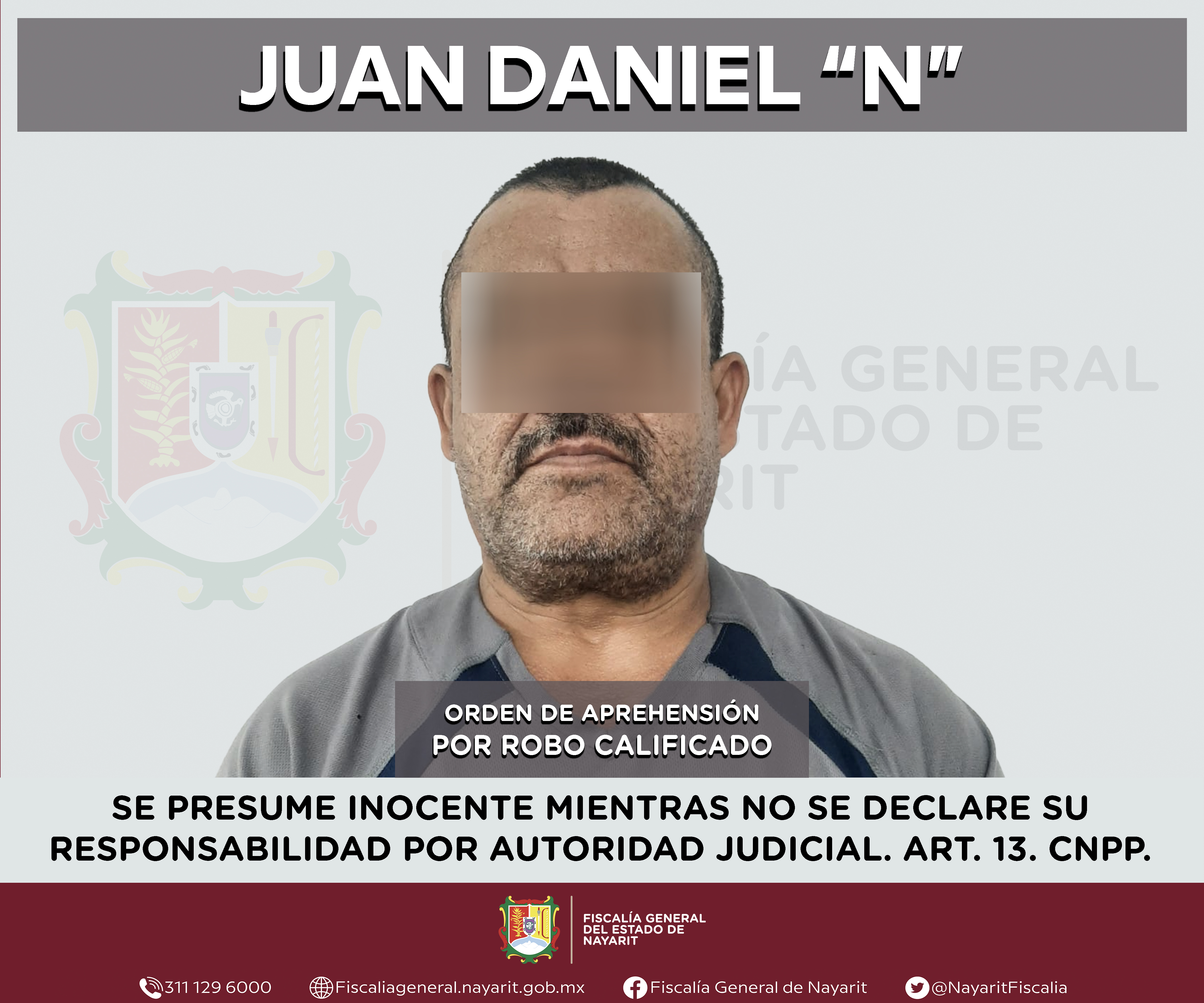 La Fiscalía General de Nayarit a través de la Agencia de Investigación Criminal ejecutó una orden de aprehensión en la localidad Las Varas, municipio de Compostela contra Juan Daniel “N”, por su probable participación en hechos que para la ley ...