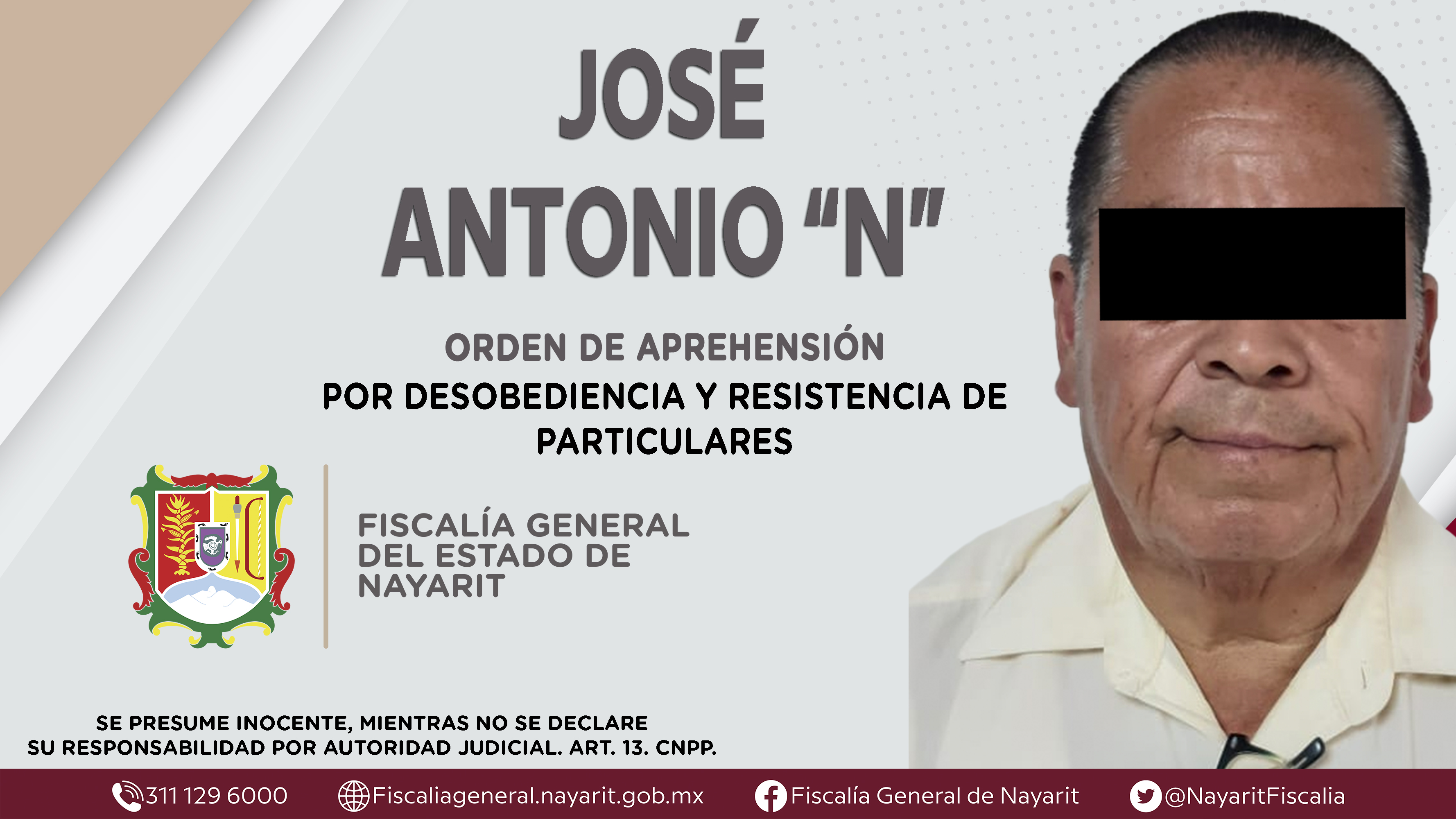 Elementos de la Agencia de Investigación Criminal de Nayarit ejecutaron una orden de aprehensión en la ciudad de Tepic contra José Antonio “N”, por su presunta participación en hechos que según apreciación de la ley encuadran el delito de desob...