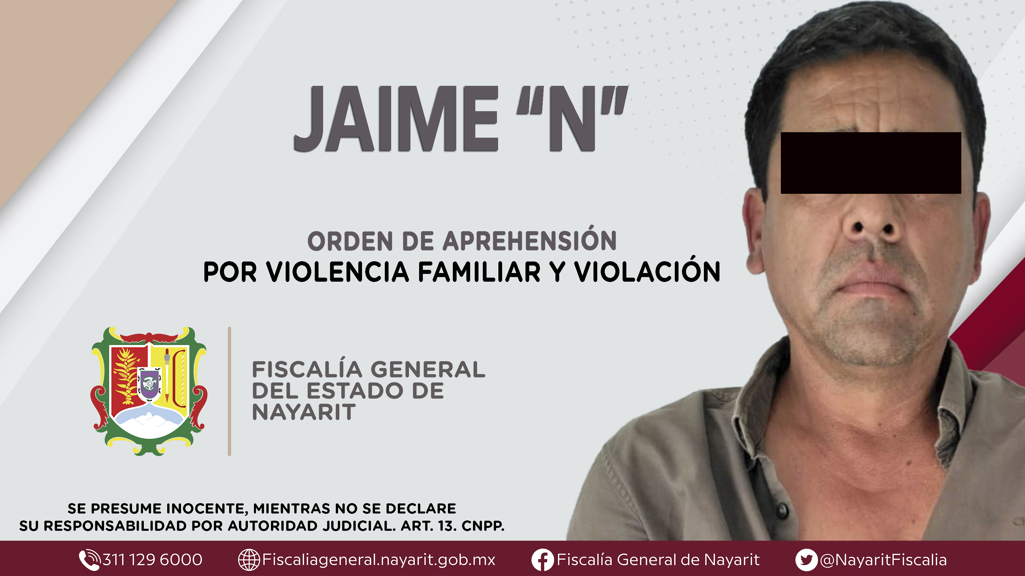 La Fiscalía General de Nayarit a través de la Agencia de Investigación Criminal cumplimentó una orden de aprehensión en el municipio de Compostela contra Jaime “N”, por su presunta participación en hechos que la ley juzga como delitos de violac...