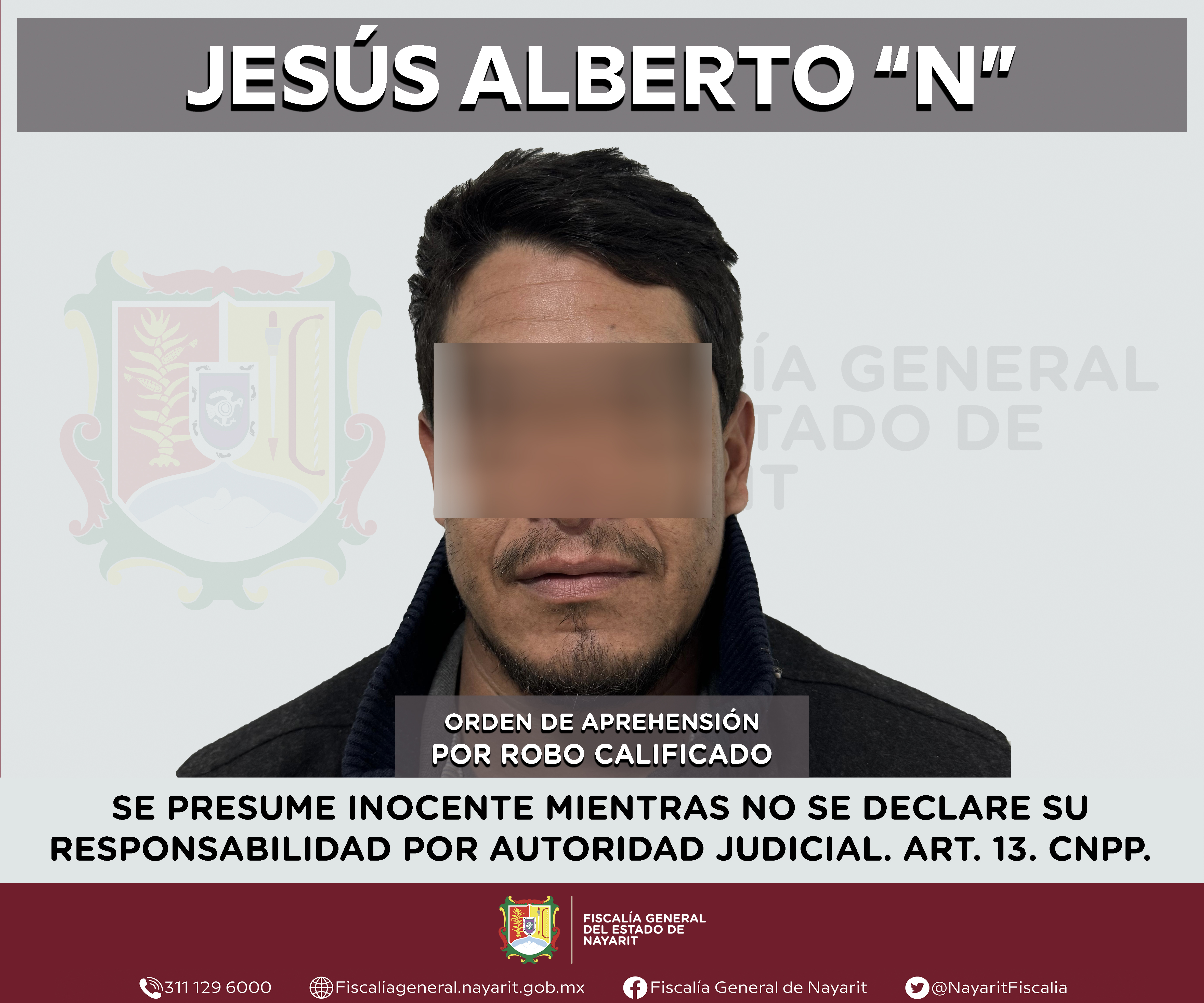 Elementos de la Agencia de Investigación Criminal de Nayarit ejecutaron una orden de aprehensión en el municipio de Ixtlán del Río contra Jesús Alberto “N”, por su probable participación en hechos que para la ley configuran el delito de robo ca...