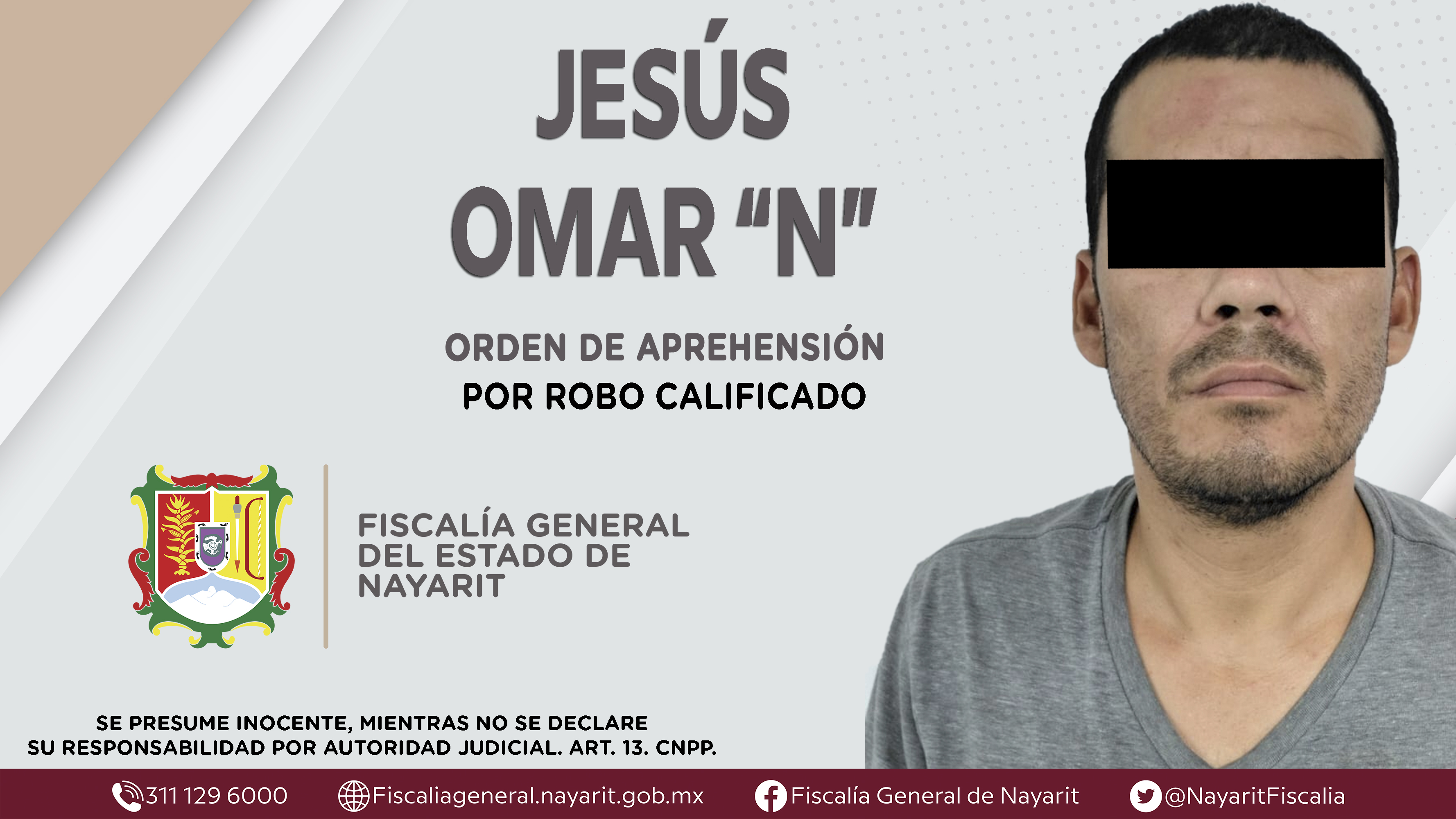 La Fiscalía General del Estado a través de la Agencia de Investigación Criminal dio cumplimiento a una orden de aprehensión en la ciudad de Tepic contra Jesús Omar “N”, por su presunta participación en hechos que bajo la apreciación de la ley ...