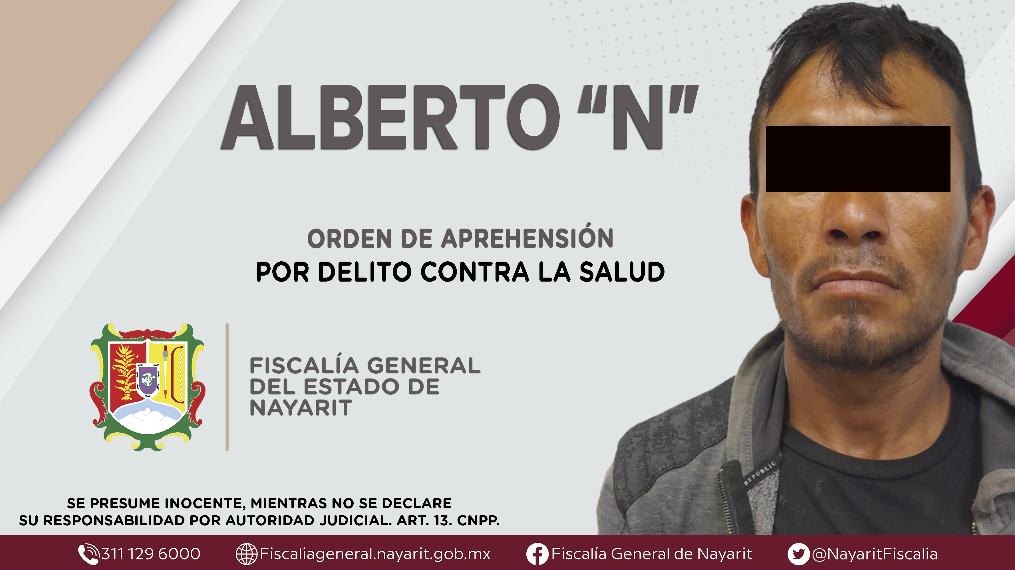 La Fiscalía General del Estado a través de la Agencia de Investigación Criminal dio cumplimiento a una orden de aprehensión en la capital nayarita contra Alberto “N”, quien es originario y vecino de la ciudad de Tepic, por su presunta participaci...