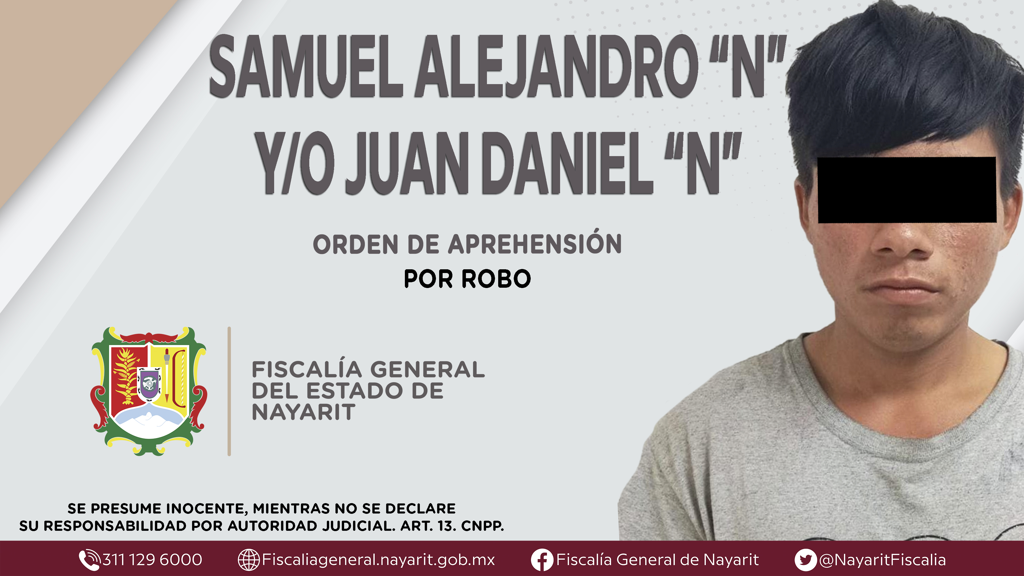 La Fiscalía General del Estado a través de la Agencia de Investigación Criminal dio cumplimiento a una orden de aprehensión en la ciudad de Tepic contra Samuel Alejandro “N” y/o Juan Daniel “N”, por su presunta participación en hechos que se...