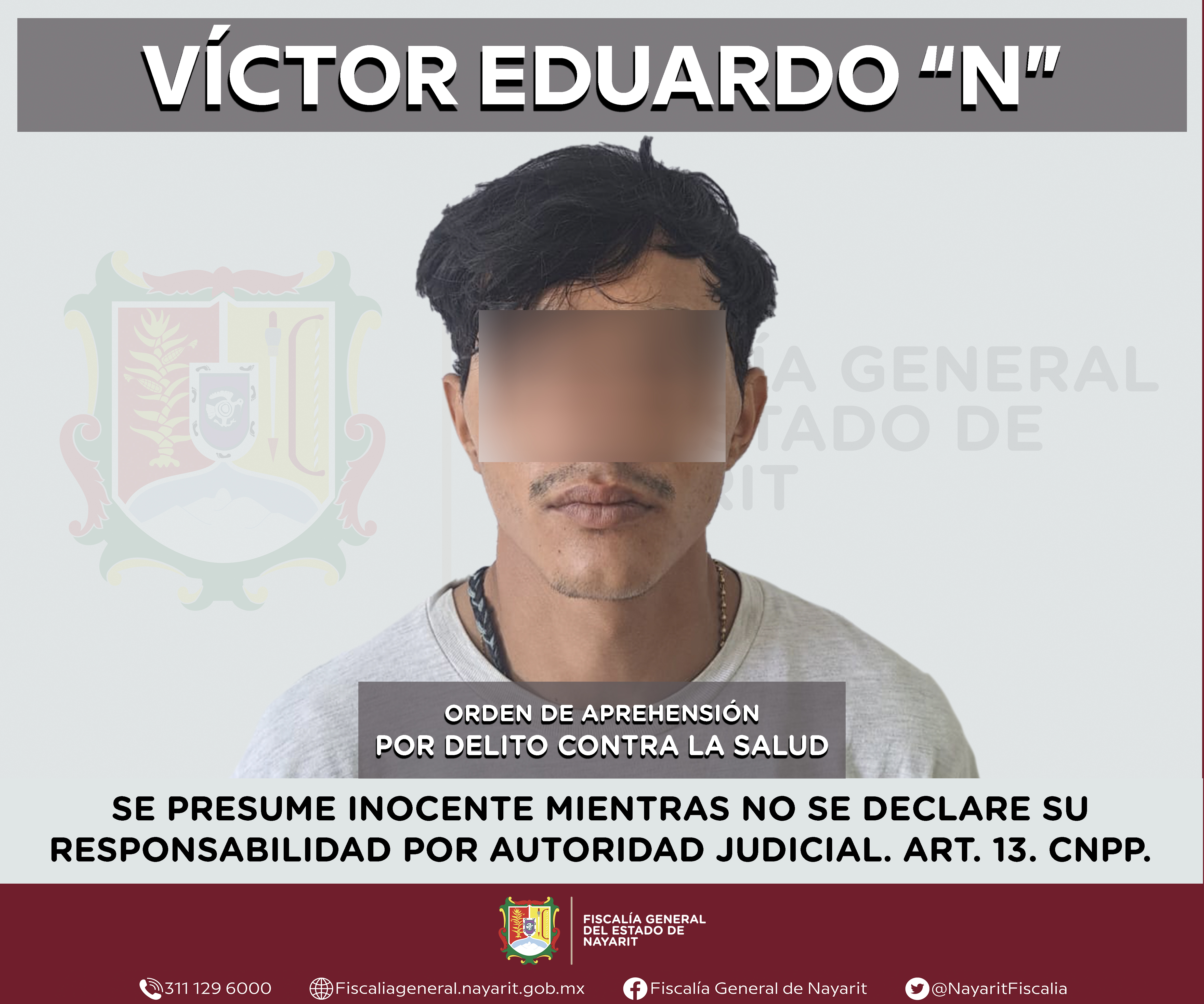 La Fiscalía General del estado de Nayarit a través de la Agencia de Investigación Criminal ejecutó una orden de aprehensión en la ciudad de Tepic contra Víctor Eduardo “N”, por su probable participación en hechos que para la ley configuran el ...