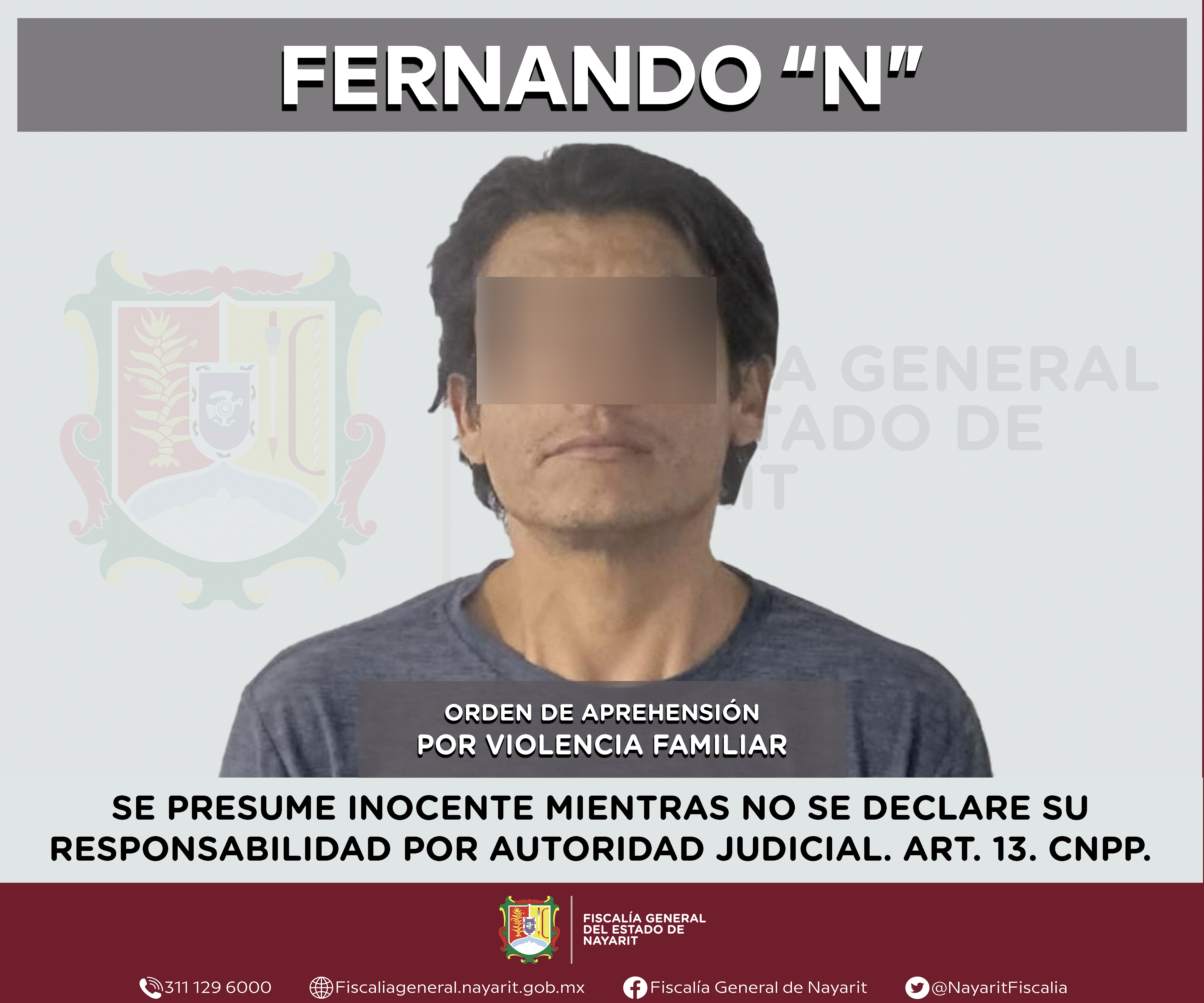 Elementos de la Agencia de Investigación Criminal de Nayarit ejecutaron una orden de aprehensión en la capital nayarita contra Fernando “N”, por su probable participación en hechos que para la ley configuran el delito de violencia familiar, cometi...