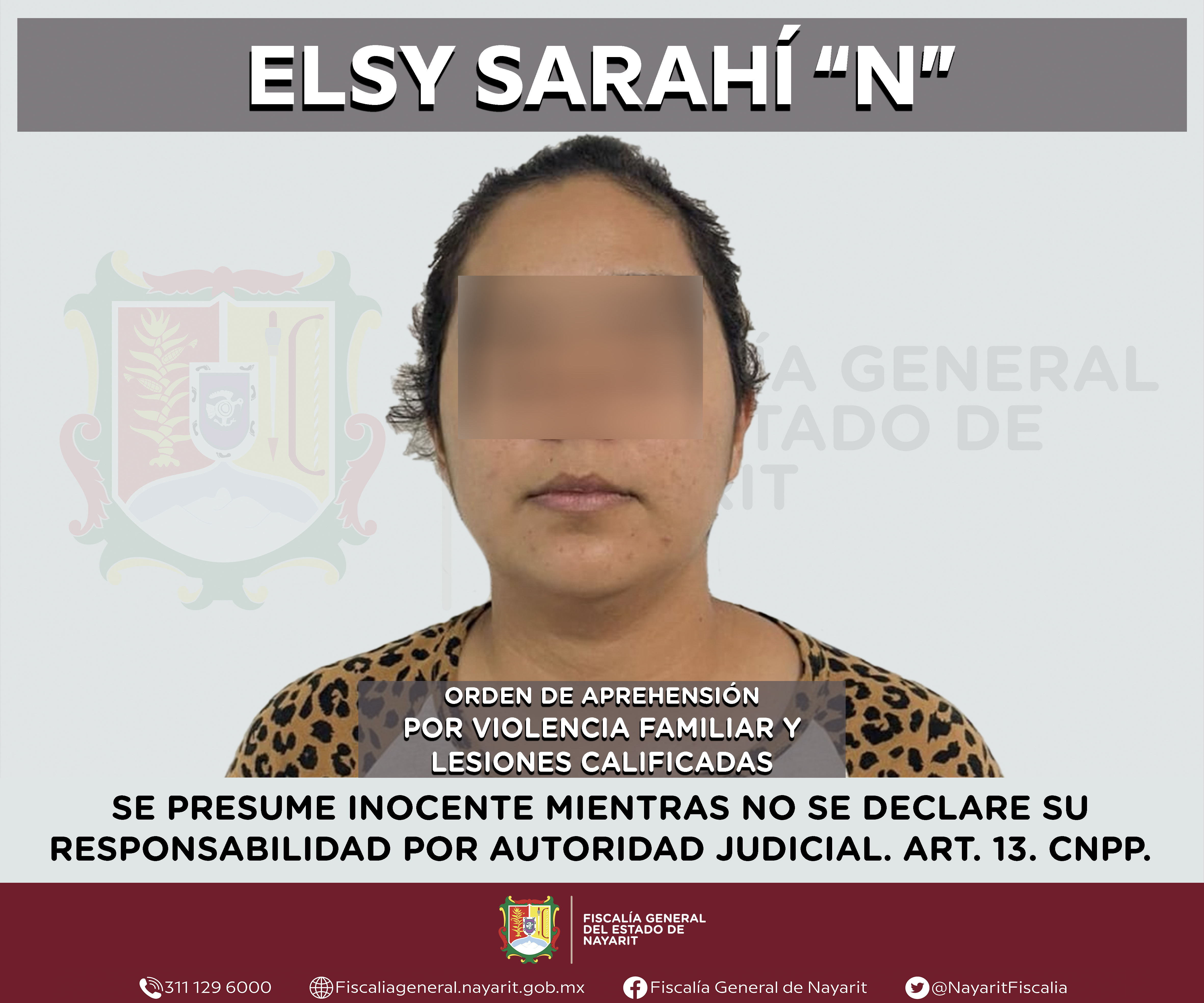 Elementos de la Agencia de Investigación Criminal de Nayarit ejecutaron una orden de aprehensión en la ciudad de Tepic contra Elsy Sarahí “N”, por su probable participación en hechos que para la ley configuran los delitos de violencia familiar y ...