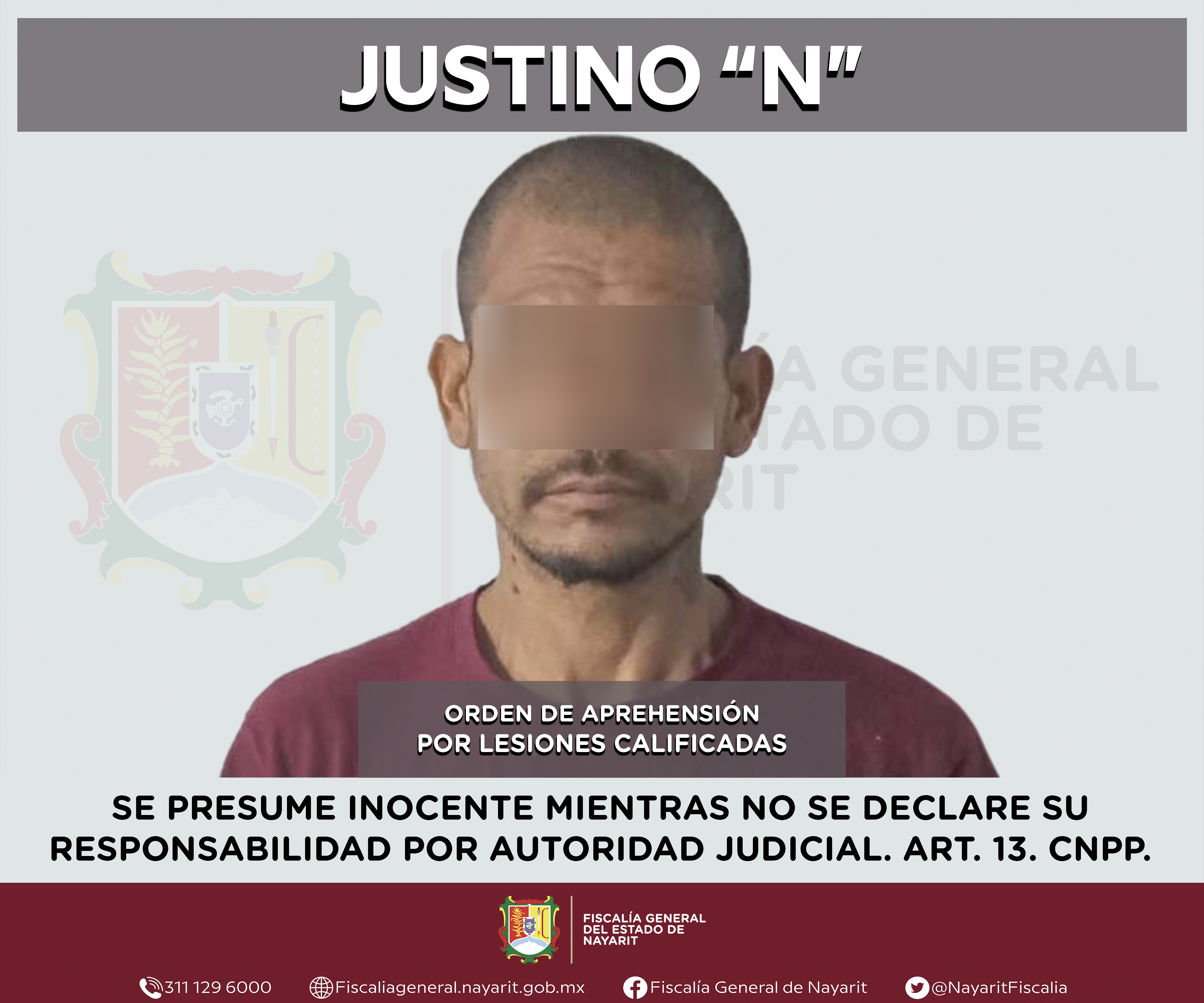 Elementos de la Agencia de Investigación Criminal de Nayarit ejecutaron una orden de aprehensión en la ciudad de Tepic contra Justino “N”, por su probable participación en hechos que para la ley configuran el delito de lesiones calificadas, cometi...