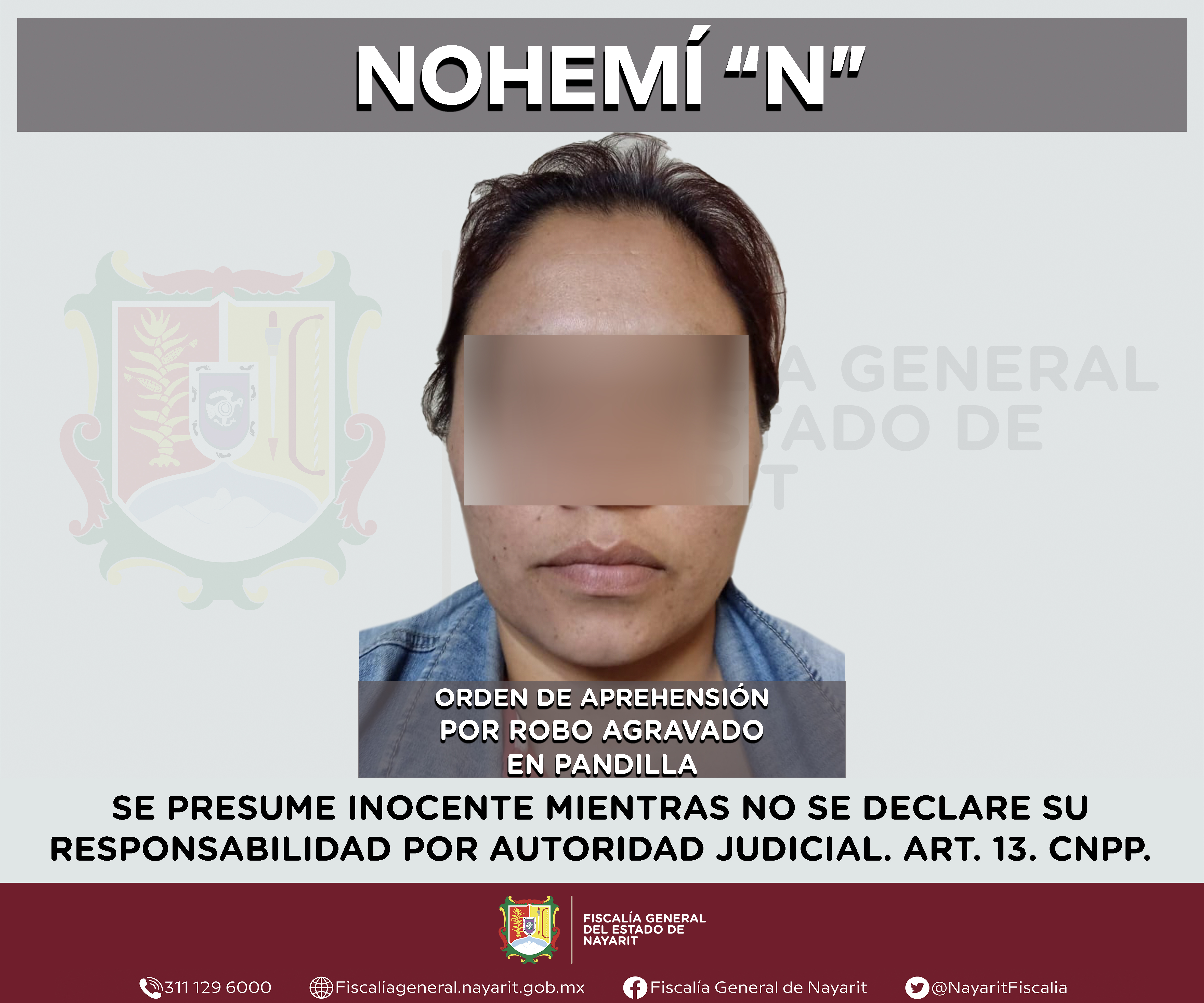 En colaboración con la Fiscalía General de la Ciudad de México, la Fiscalía General de Nayarit a través de la Agencia de Investigación Criminal ejecutó una orden de aprehensión contra Nohemí “N”, por su probable participación en hechos que ...