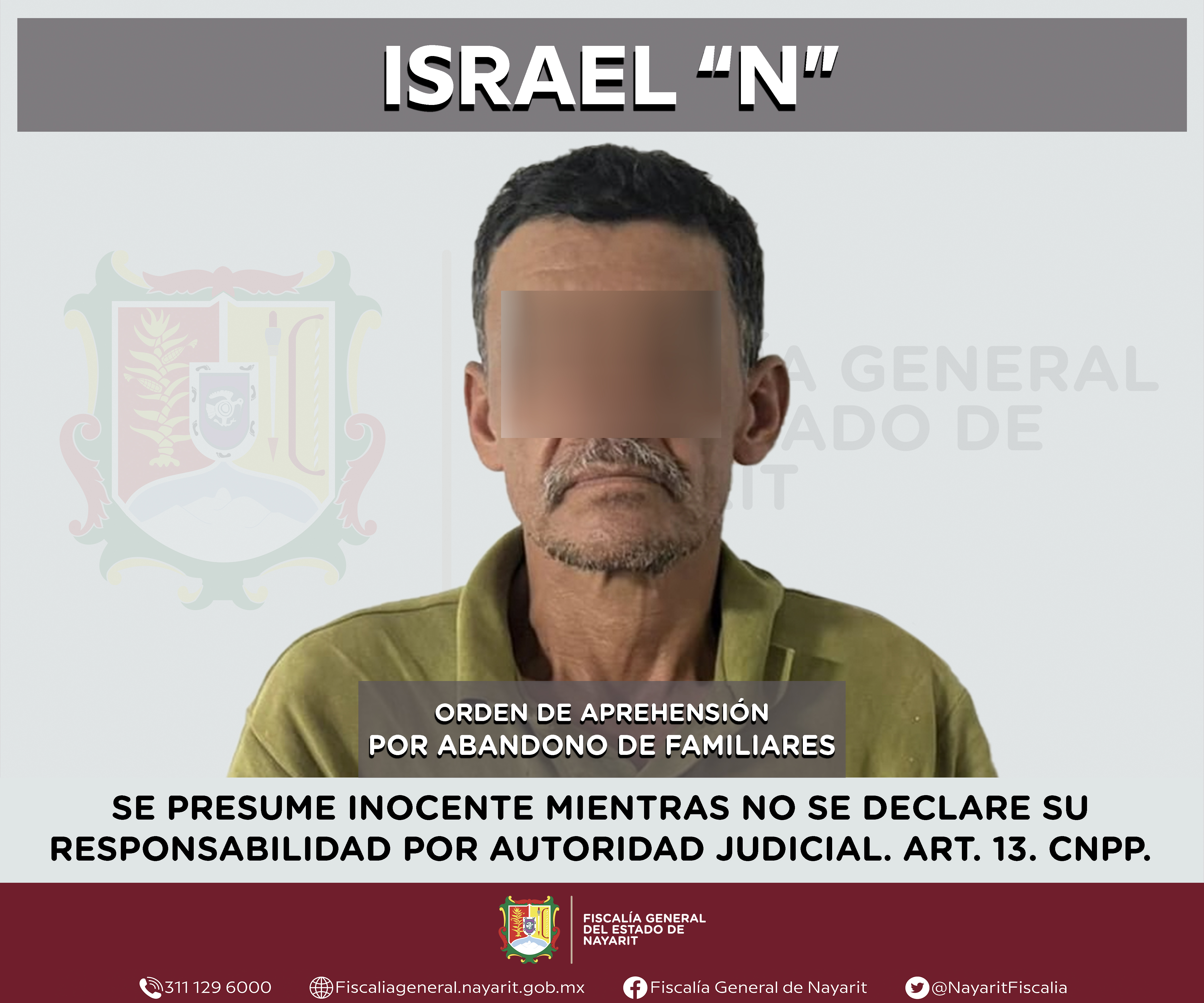 Elementos de la Agencia de Investigación Criminal de Nayarit ejecutaron una orden de aprehensión en la ciudad de Tepic contra Israel “N”, por su probable participación en hechos que para la ley configuran el delito de abandono de familiares, comet...