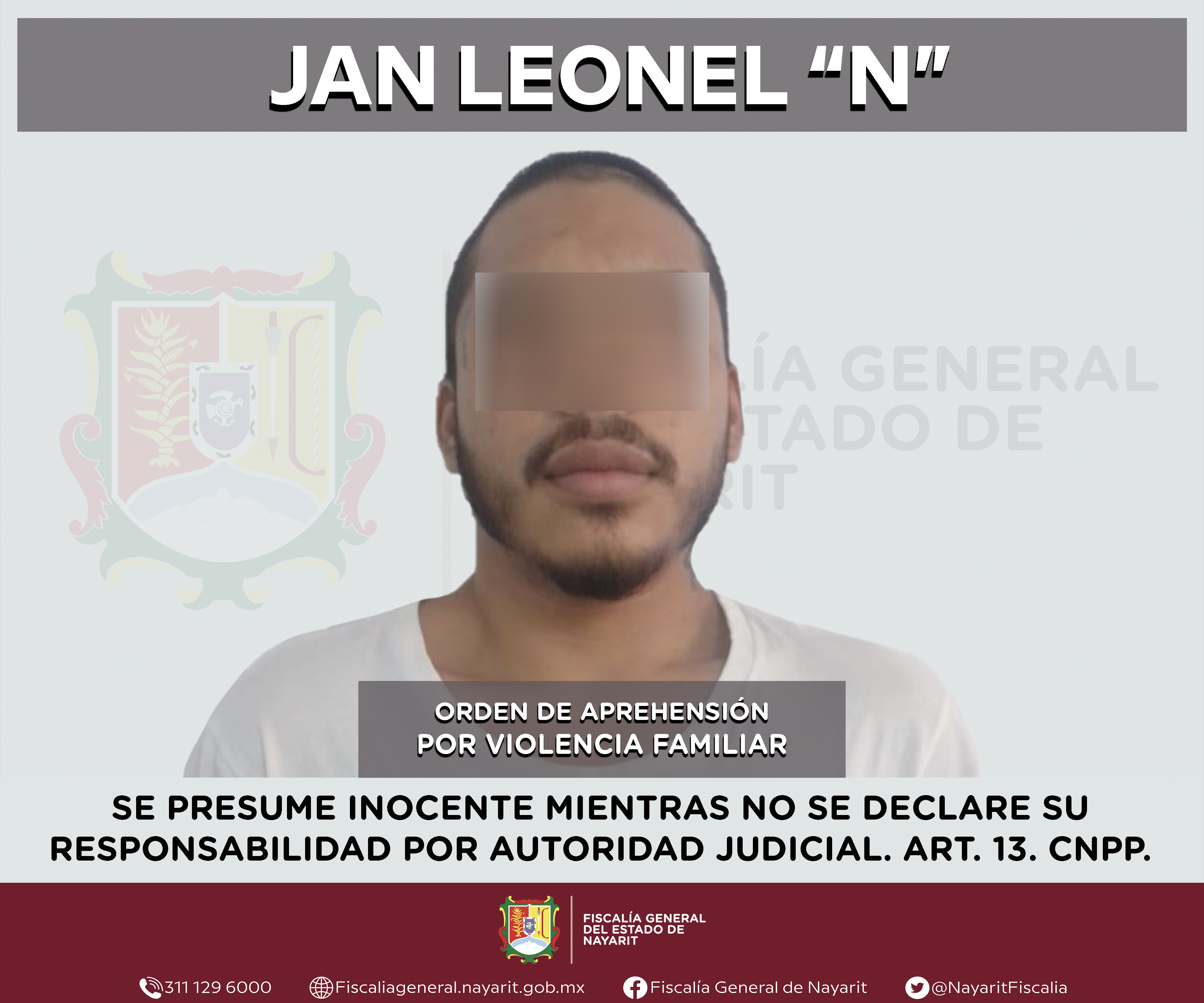 Elementos de la Agencia de Investigación Criminal de Nayarit ejecutaron una orden de aprehensión en la capital nayarita contra Jan Leonel “N”, por su probable participación en hechos que para la ley configuran el delito de violencia familiar, come...
