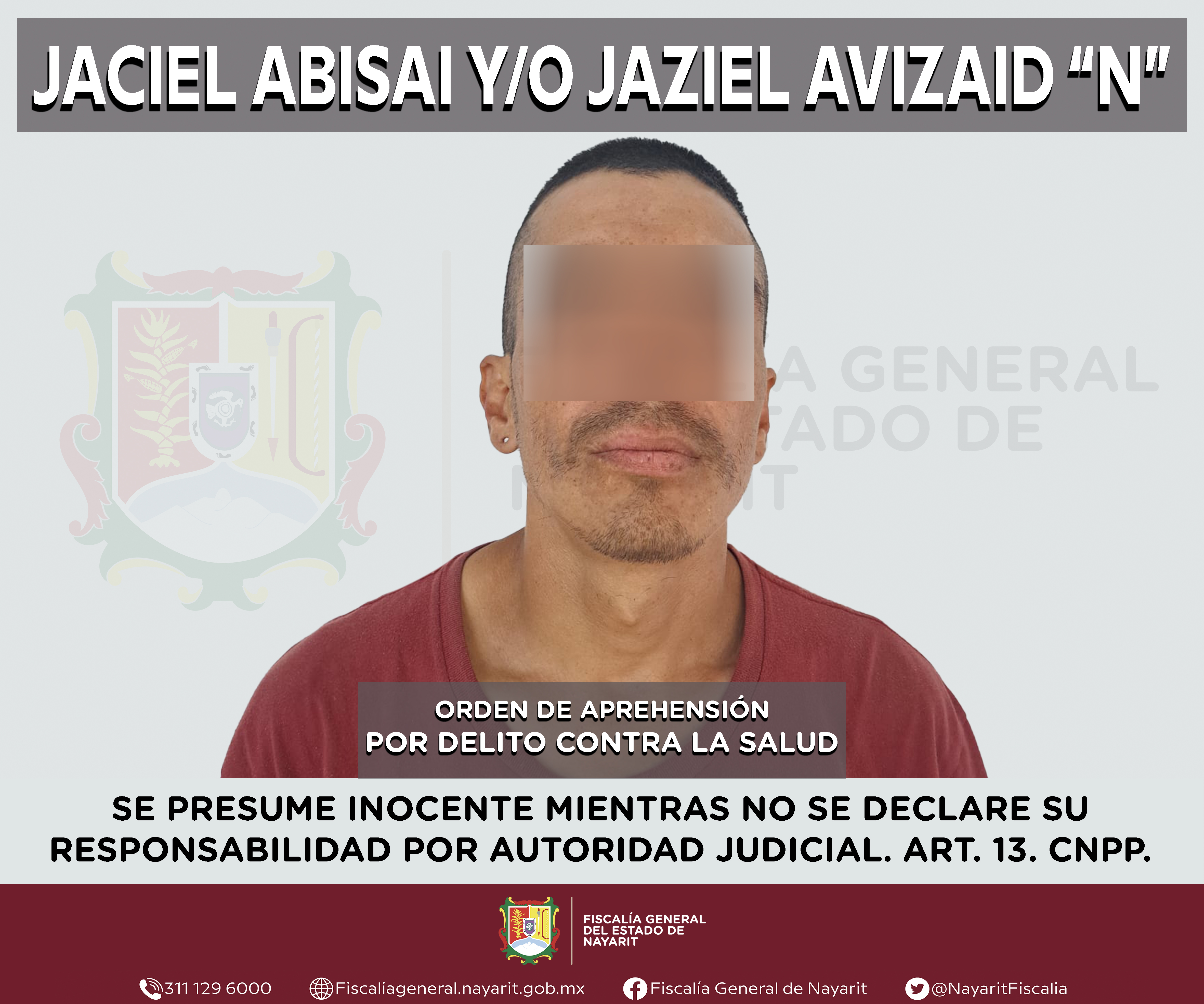 La Fiscalía General de Nayarit a través de la Agencia de Investigación Criminal ejecutó una orden de aprehensión en la capital nayarita contra Jaciel Abisai y/o Jaziel Avizaid “N”, por su presunta participación en hechos que según apreciación...