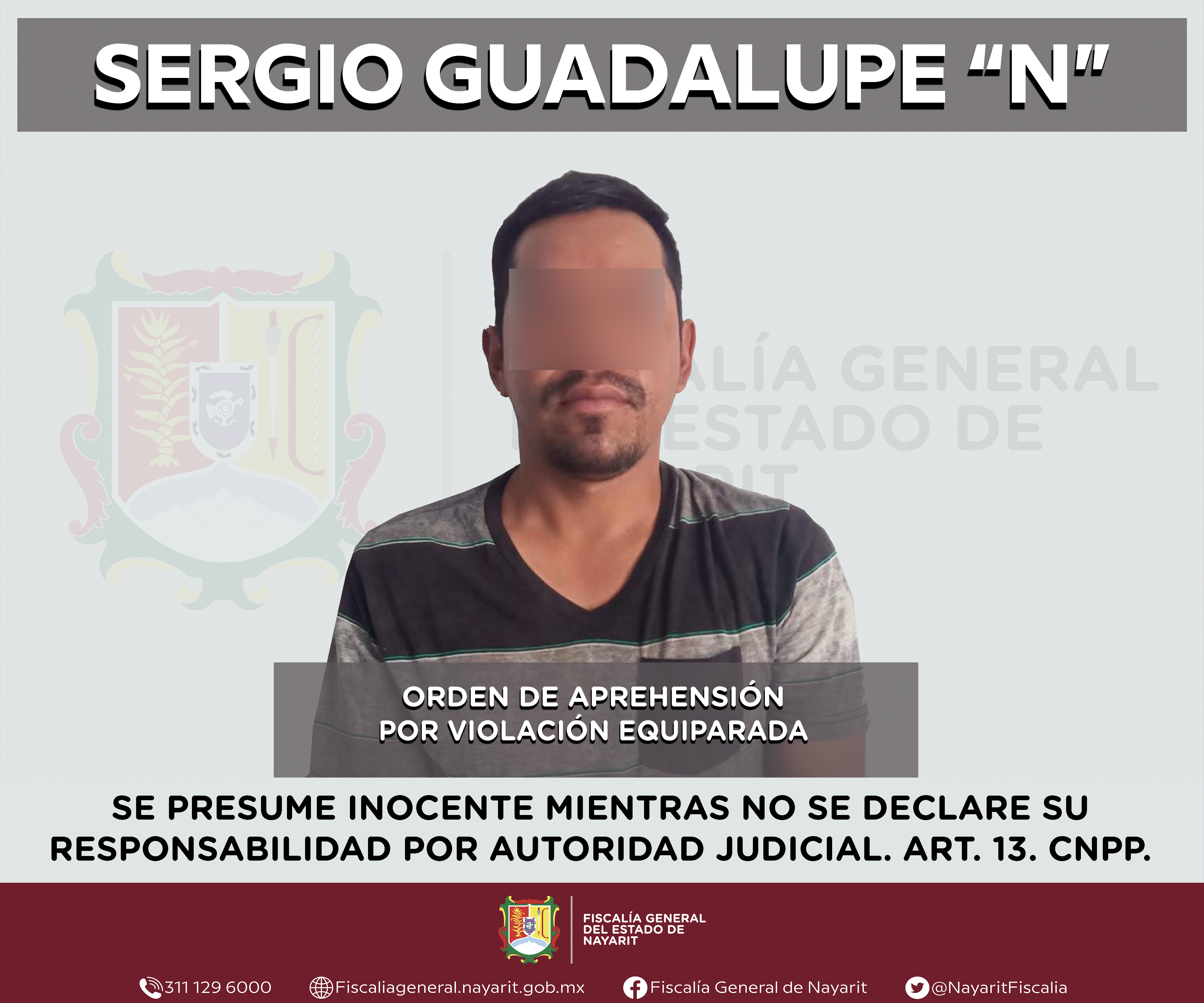 \r\n\r\nElementos de la Agencia de Investigación Criminal de Nayarit ejecutaron una orden de aprehensión en la ciudad de Tepic contra Sergio Guadalupe “N”, por su probable participación en hechos que para la ley configuran el delito de violación ...