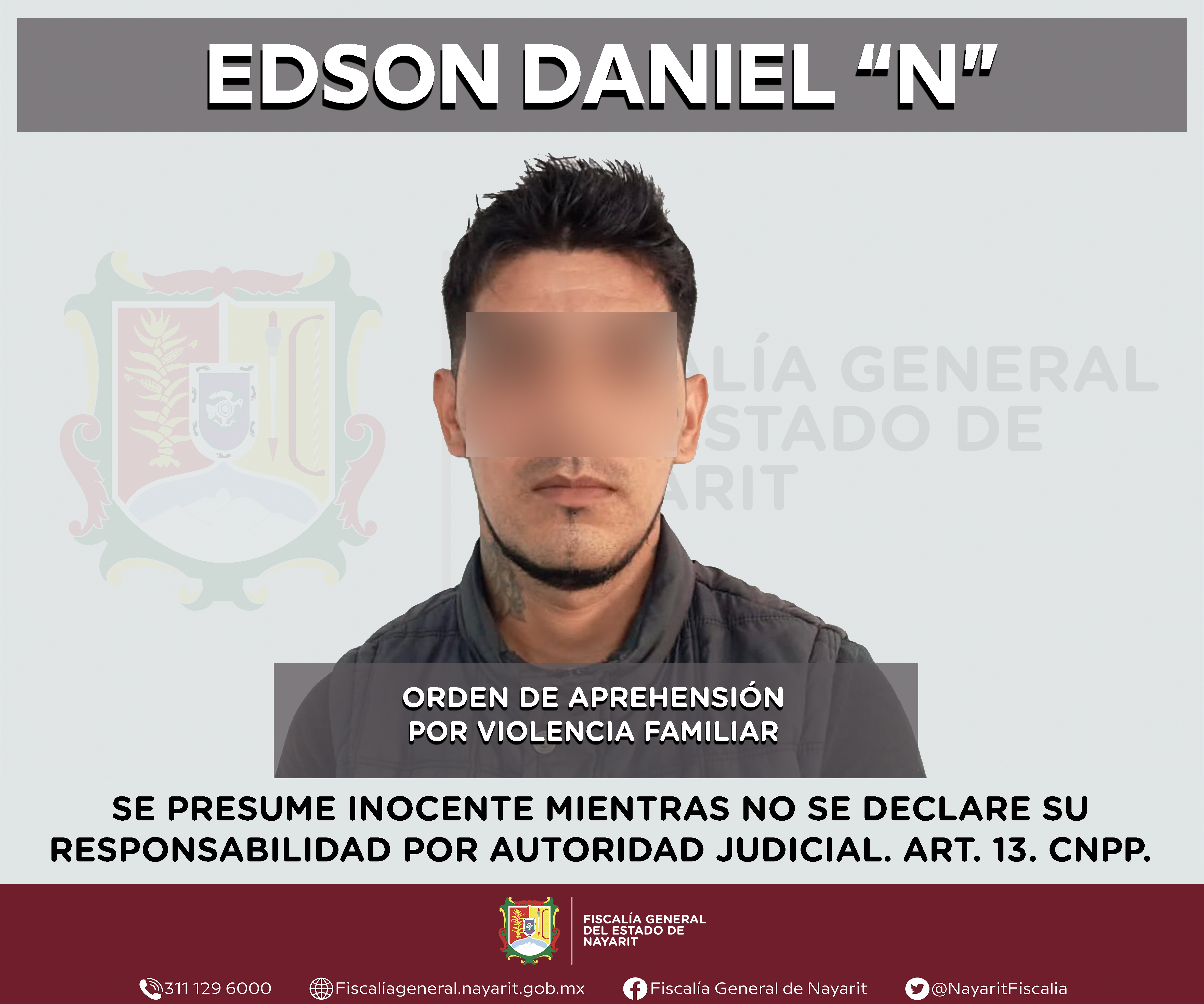 La Fiscalía General de Nayarit a través de la Agencia de Investigación Criminal ejecutó una orden de aprehensión en el municipio de Tepic contra Edson Daniel “N”, por su presunta participación en hechos que según apreciación de la ley encuadr...