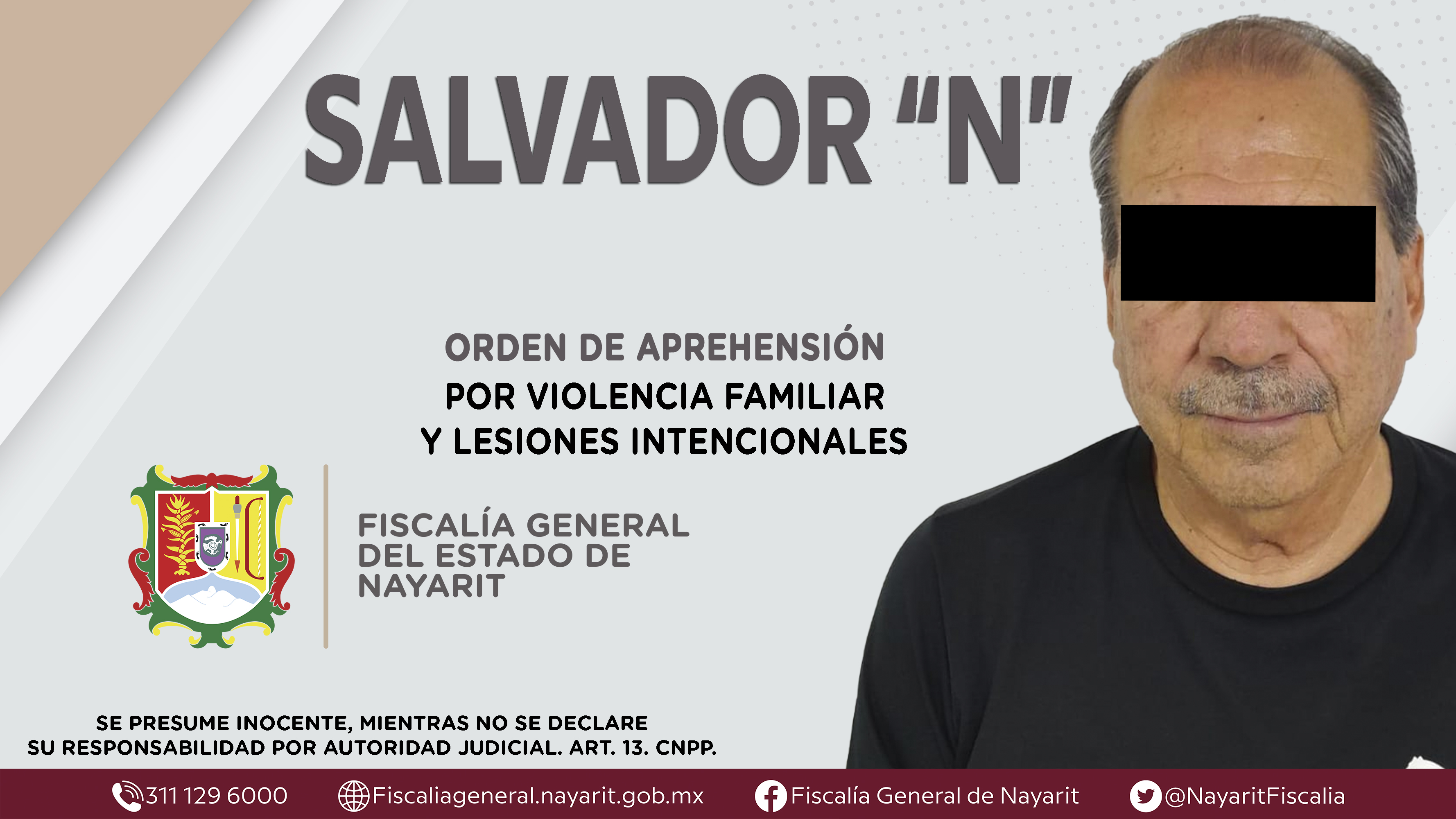 La Fiscalía General de Nayarit a través de la Agencia de Investigación Criminal dio cumplimiento a una orden de aprehensión en la capital nayarita contra Salvador “N”, por su presunta participación en hechos que según apreciación de la ley enc...