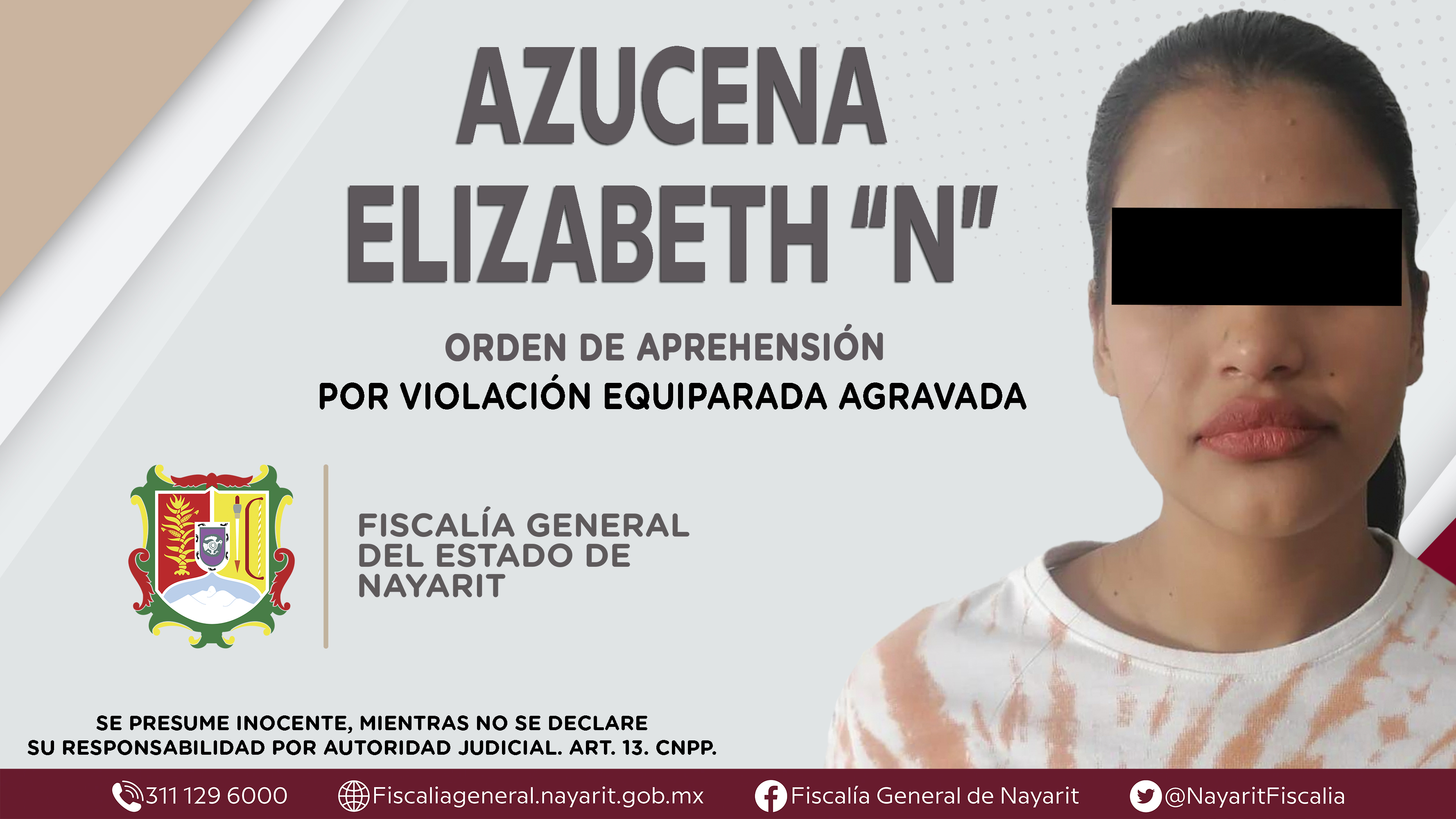 Elementos de la Agencia de Investigación Criminal de Nayarit ejecutaron una orden de aprehensión en el municipio de Bahía de Banderas contra Azucena Elizabeth “N”, por su presuntiva participación en hechos que según apreciación de la ley encuad...