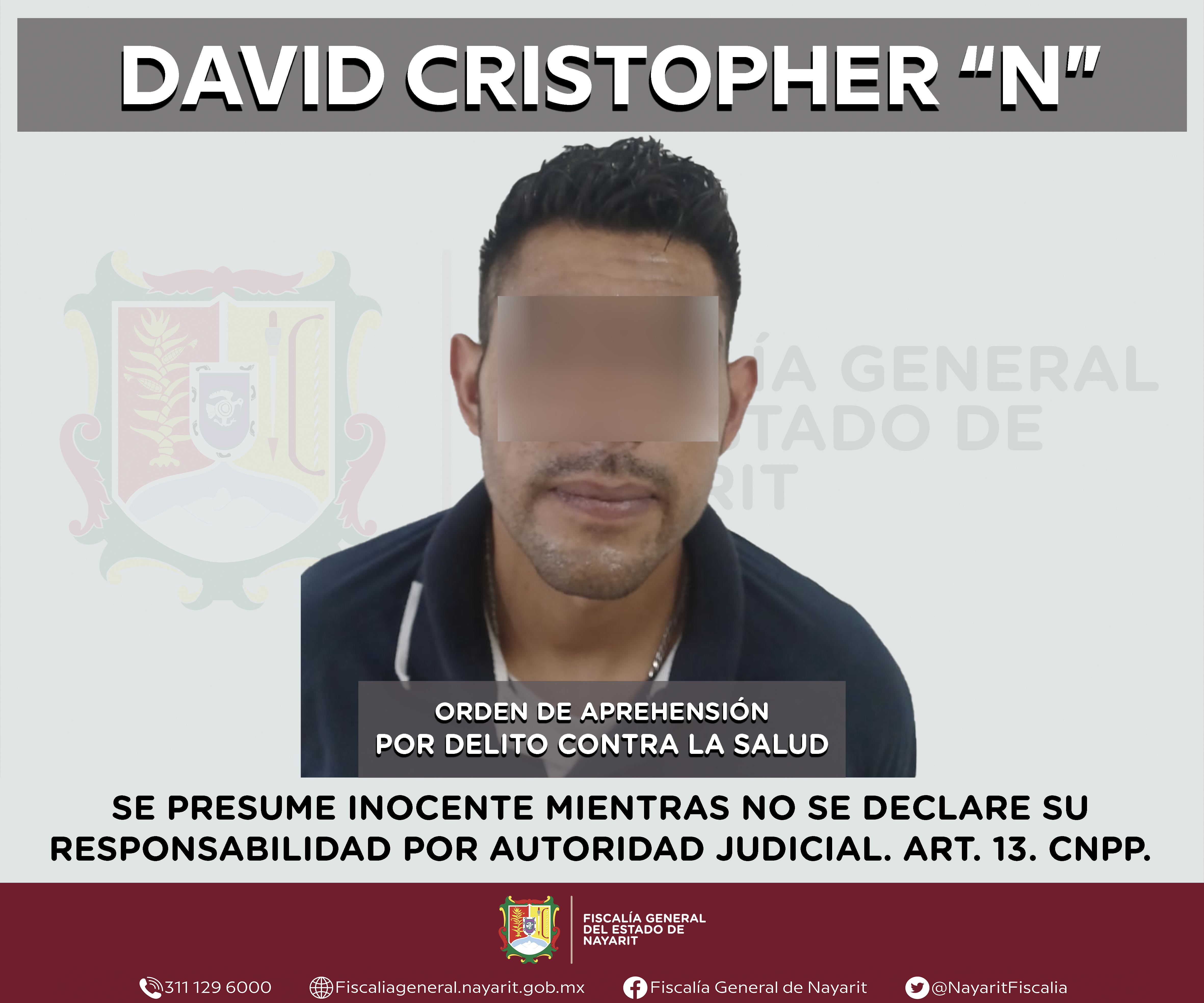 Elementos de la Agencia de Investigación Criminal de Nayarit ejecutaron una orden de aprehensión en la capital nayarita contra David Cristopher “N”, por su probable participación en hechos que para la ley configuran el delito contra la salud en su...