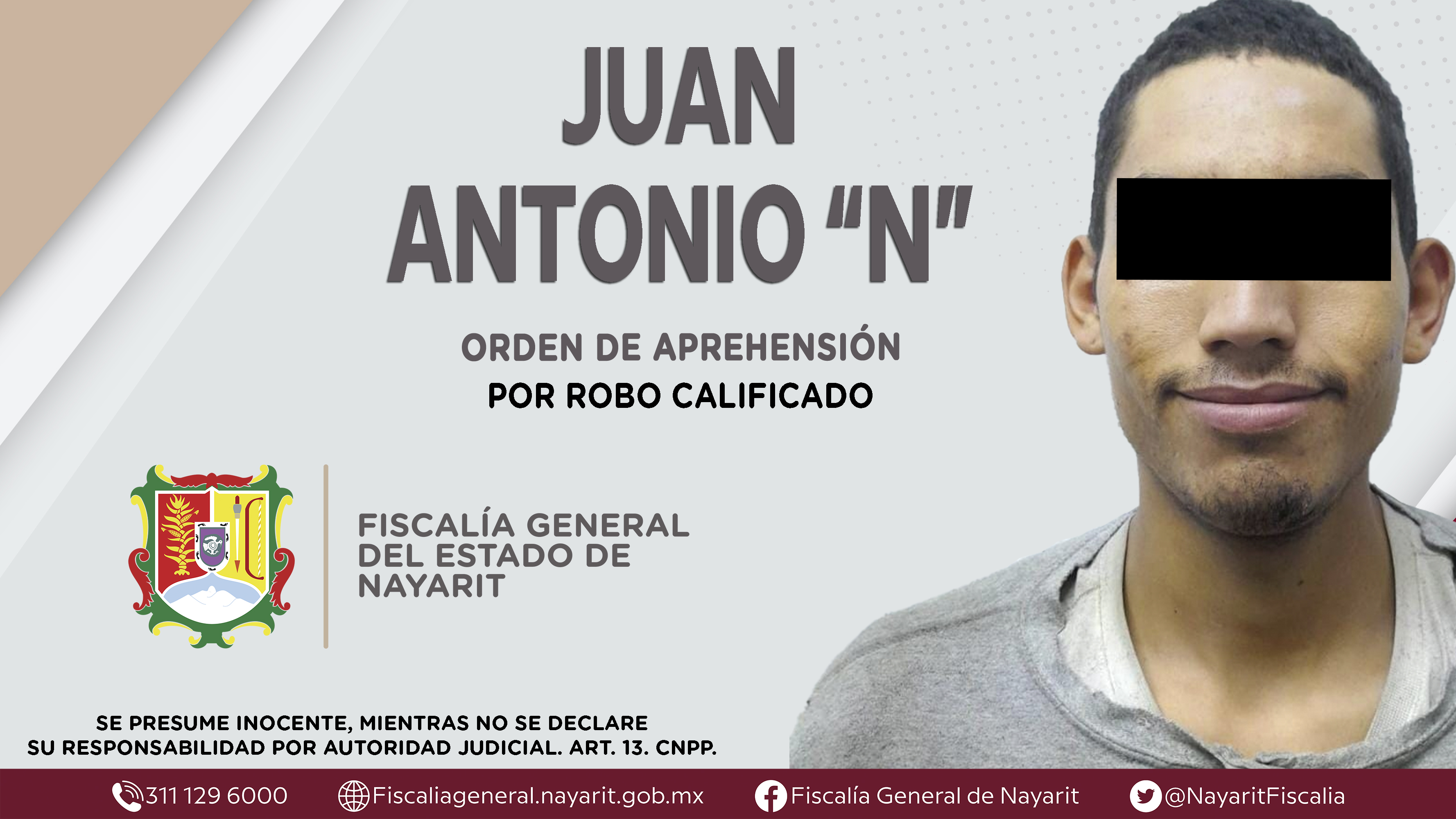 La Fiscalía General de Nayarit a través de la Agencia de Investigación Criminal dio cumplimiento a una orden de aprehensión en la capital nayarita contra Juan Antonio “N”, por su presunta participación en hechos que según apreciación de la ley...