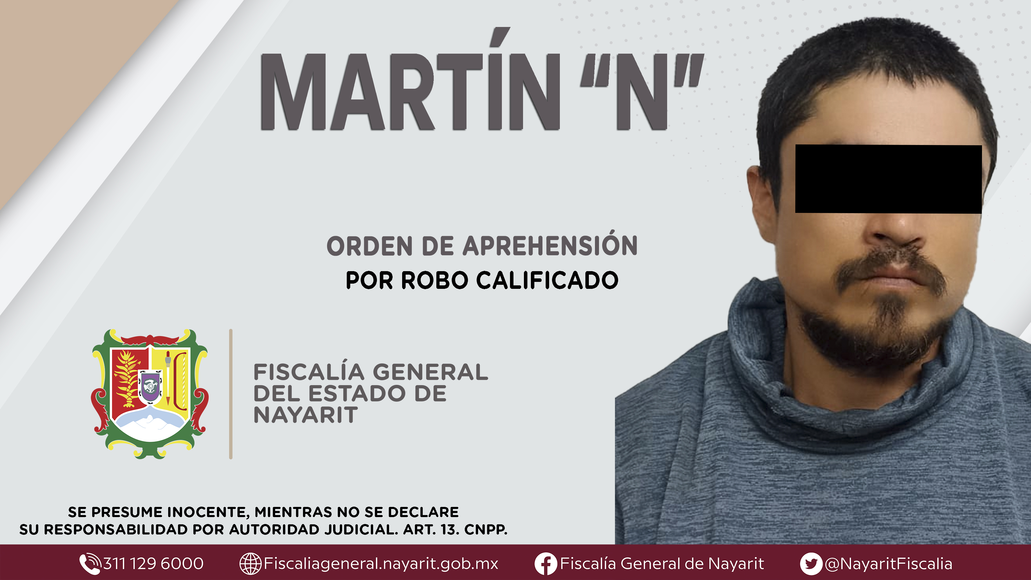 La Fiscalía General de Nayarit a través de la Agencia de Investigación Criminal dio cumplimiento a una orden de aprehensión en el interior del Centro de Readaptación Social Regional de Bucerías, municipio de Bahía de Banderas contra Martín “N...