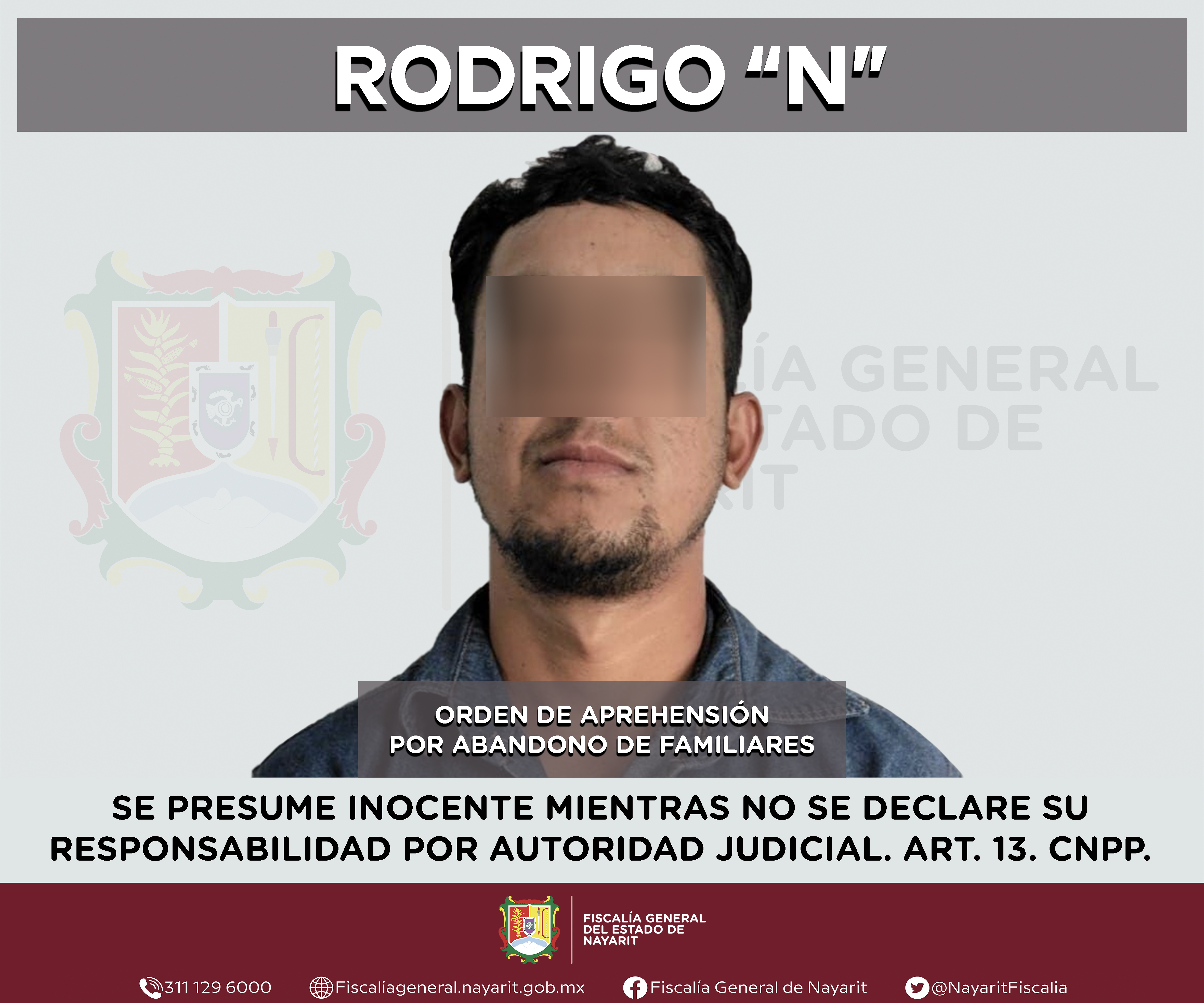 La Fiscalía General de Nayarit a través de la Agencia de Investigación Criminal ejecutó una orden de aprehensión en la ciudad de Tepic contra Rodrigo “N”, por su presunta participación en hechos que según apreciación de la ley encuadran el de...